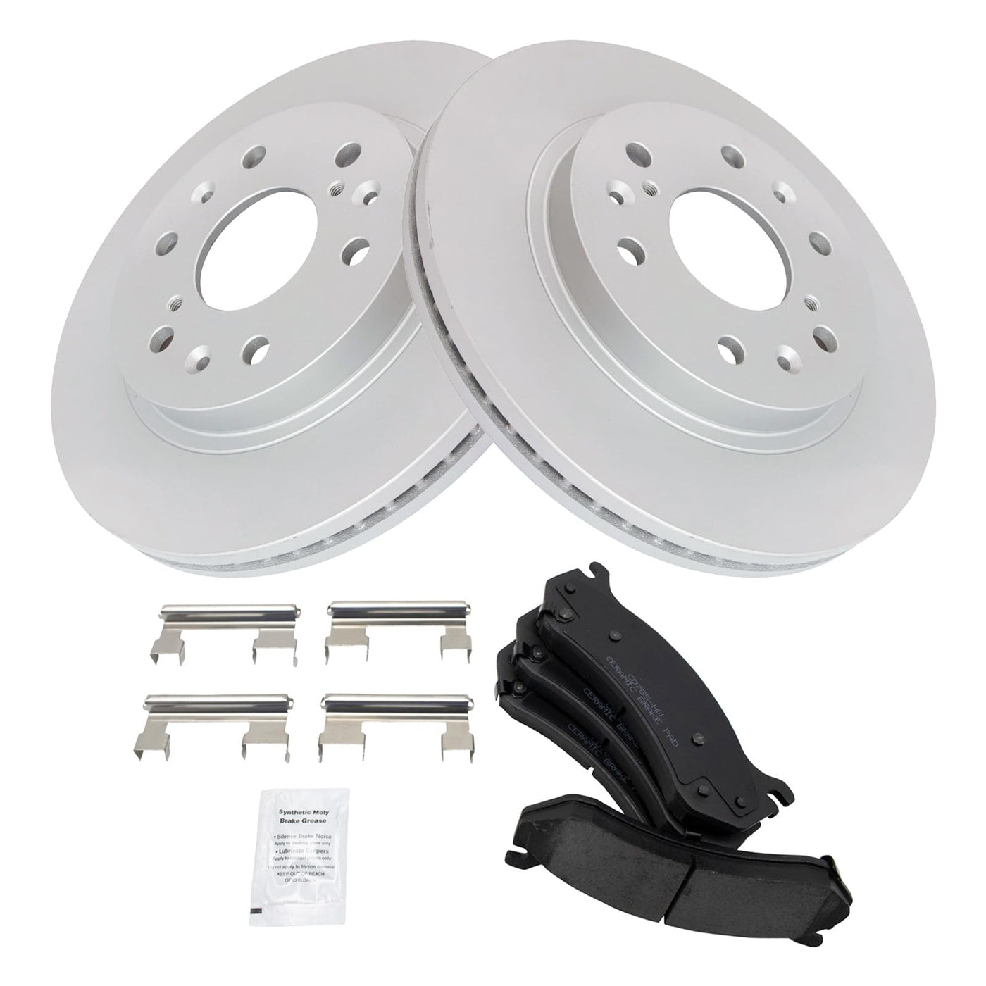 Ceramic Brake Pad & Rotor KitKit Includes(1) Front Ceramic Brake Pad Set(2) Front Premium G-Coated Brake RotorsFitmentCompatible with: 2006 Chevrolet Silverado 1500 SS with 6 Lug Wheels with Rear Drum Brakes Front Ceramic Premium G-Coated Brake Pad & Rotor KitCompatible with: 2007 Chevrolet Silverado 1500 Classic with 6 Lug Wheels with Rear Drum Brakes Front Ceramic Premium G-Coated Brake Pad & Rotor KitCompatible with: 2007 GMC Sierra 1500 Classic with 6 Lug Wheels with Rear Drum Brakes Front Ceramic Premium G-Coated Brake Pad & Rotor KitProduct AttributesBrake Pad Friction Material: CeramicBrake Rotor Coating: Premium G-CoatedProduct Features Positive Molded: Less dust resulting in clean wheels Electrostatic Coated: Long-lasting rust protection G3000 Casting Alloy: Reduced noise and improved wear resistance Application Specific Design: Extended service life, no modificationsItem DetailsTRQ brake kits are designed to restore your brake system to like-new performance. TRQ brake pads are positive molded, thermal scorched, chamfered, and utilize a multi-layer shim for enhanced performance and service life. TRQ G-coated rotors have long-lasting rust prevention, perfect for wheels with large openings that expose the rotor and rotor hat during daily drives. All products are fit and road-tested in our Massachusetts R&D facility to ensure we deliver on our promise of Trusted Reliable Quality.Reference NumbersACDelco: 177-0918, 18A1705, 18A1705AAdvance Auto Parts: BD126358, G12518SD, YH145582, YH145582C, YH145582PAimco: 10155097, 55097, PR55097AmeriBRAKES: 493715, 593715, PR93715ATE: CW30745Auto Extra: AX55097Autopart International: 1407-77141, 1427-530174, 77141Autopartsource: 593715Autoxtra: 80580279, AX55097AutoZone: 55097, 55097DG, 55097DLBendix Global: 145582, PRT5582Bendix: 145582, PRT5582BrakeBest: 521581RGS, 580279RGS, 81-126358Brembo: 09.A406.10, 27416Cadillac: 18048101Carquest Frontline: G12518SDCasting Numbers: 18048387, 326223Centric Parts: 120.66057, 120.66057CRY, 121.66057, 125.66057, 125.66057CRY, 126.66057CSL, 126.66057CSR, 126.66057SL, 126.66057SR, 127.66057CL, 127.66057CR, 127.66057L, 127.66057R, 128.66057CL, 128.66057CR, 128.66057L, 128.66057R, 227.66057L, 227.66057R, 320.66057Chevrolet: 15886462, 18041762, 18048101, 19210705, 19210707, 25976453Dura Corp: BR55097, BR5509702DuraGo: BD36296, BR55097, BR55097-02, BR5509702, P580279Dynamic Friction Company: 604-48050Eurorotor: 55402FREMAX BRAKE ROTORS AND DRUMS: BD6057General Motors: 22818355, 22950036, 23144340, 25819670, 88963556GMC: 15886462, 18041762, 18048101, 19210705, 19210707, 25976453Hummer: 15886462, 18041762, 25976453IMC: 405-20-024, 405-20016, 40520016253, 40520016501Max Advanced Brakes: ONZ0763Mighty Distributing System: 55097Monroe Brakes: BD126358NAPA: 880279, 880279PNewtek Automotive USA: 55097Nissan: 13064419, 13104419Omnicraft: QBRR219OMNIPARTS: 13064419, 13104419Performance Friction: 326.056.01PowerStop: AR82132EVC, AR8654EVCPremiumOne: CW30745Promax: 14-55097, 20-55097Pronto: 55097, BD36296, BR55097QBP International: EC55097, Q55097Qualis: 55097Quality Brand: Q4214Raybestos Brakes: 580279, 580279R, 680686R, EHT785H, MGD785CH, SGD785CRS Parts: RS580279Transglobe Automotive: GBC55097, GC55097Transit: 8-580279, DS1-580279, GCR580279TRQ: BKA10069, BKA10452, BKA10548, BKA11188, BKA11207, BKA11286, BKA11287, BKA11903, BKA11962, BKA12053, BKA12054, BKA12195, BKA12204, BKA12232, BKA12259, BKA12260, BKA12594, BKA12771, BKA12821, BKA12904, BKA14029, BKA14059, BKA14406, BKA14857, BKA15015, BKA15028, BKA15030, BKA15031, BKA15032, BKA15342, BKA15537, BKA15636, BKA15680, BKA15785, BKA15952, BKA16791, BKA16894, BKA17004, BKA17027, BKA17096, BKA17182, BKA17456, BKA17522, BKA17529, BKA17533, BKA17652, BKA17673, BKA17714, BKA17718, BKA17854, BKA17895, BKA17922, BKA18314, BKA18562, BKA18649, BKA18700, BKA18701, BKA18702, BKA18703, BKA18844, BKA18845, BKA18871, BKA18872, BKA19404, BKA19940, BKA19948, BKA19982, BKA20002, BKA52094, BRA13857, BRA13956, BRA74615, BRA75139UAP: 55097Ultra Brake: 55402VIPAR - Vehicle Indusrty Parts & Manufacturing: X51681WABCO - Archived: PS126358Wagner Brake: BD126358, BD126358E, BD180409, BD180409EWearever: YH145582, YH145582CWinhere: 126358, 4420538, 5520538, 6620538