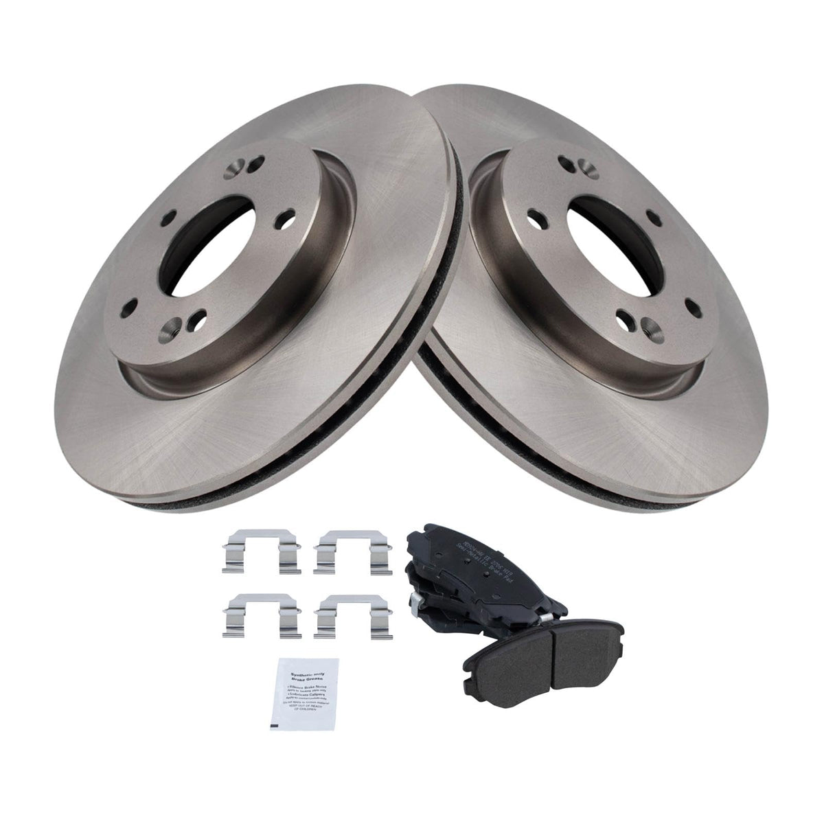 Trq Front Brake Pad & Rotor Kit Semi-Metallic Compatible With 2005-2010 Hyundai Sonata 2006-2010 Kia Optima 2012-2013 Soul