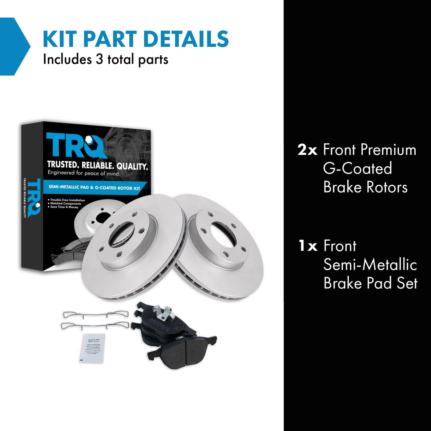 Trq Front Brake Pad & Rotor Kit Semi-Metallic Premium G-Coated Compatible With 2004-2013 Mazda 3