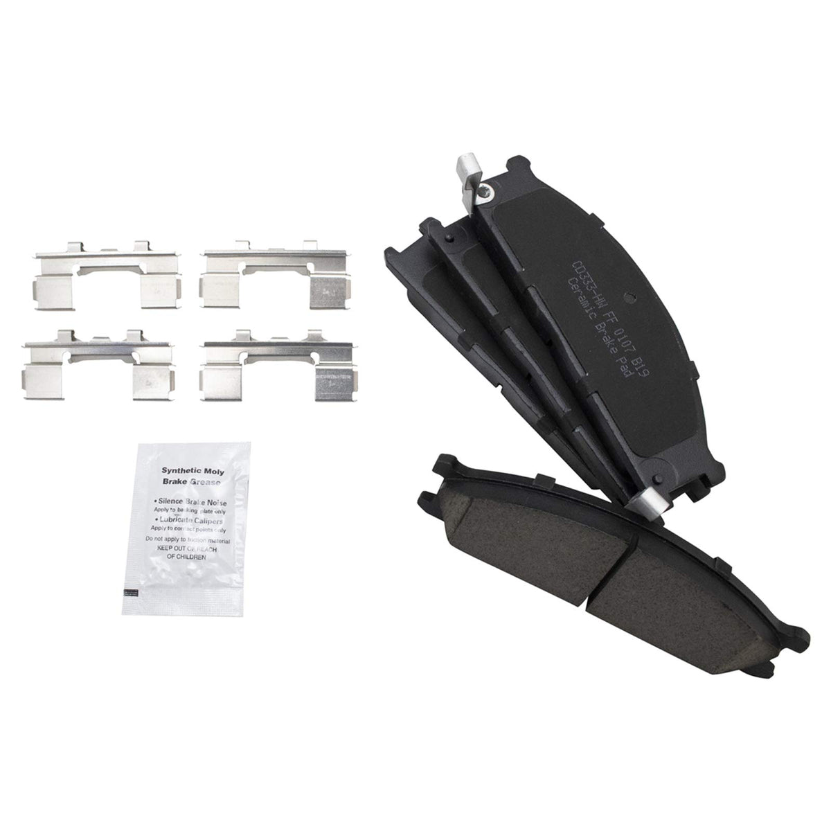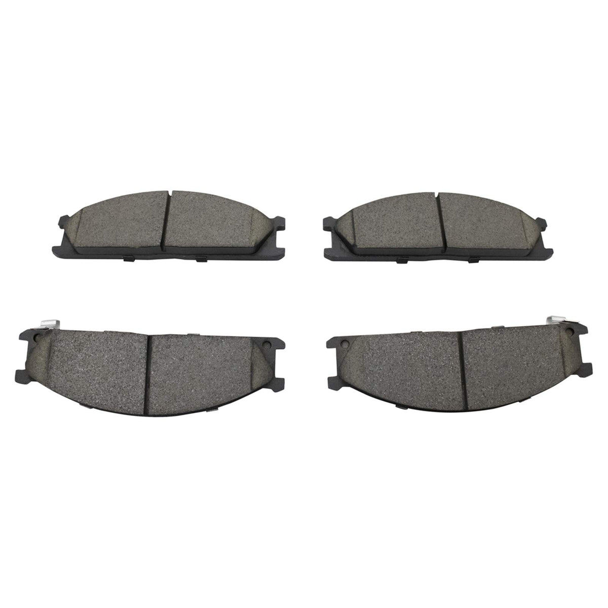 Ceramic Brake PadsFitmentCompatible with: 1998-04 Nissan Frontier FrontCompatible with: 1986-94 Nissan D21 Hardbody Pickup L4 2.4L 4 Wheel Drive FrontCompatible with: 1995-97 Nissan Pickup L4 2.4L 4 Wheel Drive FrontCompatible with: 2003-04 Nissan Frontier L4 2.4L Rear Wheel Drive FrontCompatible with: 1990-94 Nissan D21 Hardbody Pickup 4 Wheel Drive FrontCompatible with: 1987-95 Nissan Pathfinder FrontCompatible with: 1986-87 Nissan D21 Hardbody Pickup V6 3.0L 4 Wheel Drive FrontCompatible with: 1986 Nissan 720 4 Wheel Drive FrontCompatible with: 1992-97 Subaru SVX FrontProduct AttributesOuter Pad Friction Material Thickness: 0.43 inInner Pad Friction Material Thickness: 0.43 inOuter Pad Overall Thickness: 0.67 inInner Pad Overall Thickness: 0.67 inOuter Pad Height: 1.93 inInner Pad Height: 1.93 inOuter Pad Friction Material Thickness: 11 mmInner Pad Friction Material Thickness: 11 mmOuter Pad Width: 161 mmInner Pad Width: 161 mmInner Pad Overall Thickness: 17 mmOuter Pad Overall Thickness: 17 mmPad Quantity: 4Outer Pad Height: 49 mmInner Pad Height: 49 mmInner Pad Width: 6.34 inOuter Pad Width: 6.34 inFriction Material Attachment: BondedFriction Material Composition: CeramicPad Wear Sensor Type: MechanicalGrade Type: RegularFriction Surface Scorched: YesPad Shims Included: YesPad Wear Sensor Included: YesAbutment Clips Included: YesBrake Lubricant Included: YesBrake Pad Friction Material: CeramicIncludes: Contact Point GreaseIncludes: HardwareBrake Pad Bonding Type: Premium PosiProduct Features Positive Molded: Less dust resulting in clean wheels Thermal Scorched: Improved stopping performance Application Specific Design: Extended service life, no modifications Hardware and grease included for a complete repair Environmentally Compliant: Meets all Better Brake Law standardsItem DetailsTRQ brake pads are manufactured using premium raw materials and design standards to restore original performance. TRQ brake pads are positive molded and utilize a multi-layer shim for enhanced performance and service life. TRQs combination of materials and design ensures a low dust and low noise braking experience. TRQ recommends replacing your brake rotors when you replace your brake pads to ensure even wear of components and improved braking comfort. All products are fit and road-tested in our Massachusetts R&D facility to ensure we deliver on our promise of Trusted Reliable Quality.Reference NumbersNissan: 4106023C90, 410602S790, 4106032G91, 4106032G92, 4106032G93, 410603S590, 4106057G90, 41060V7090, 41060VJ490, D106011P28Raybestos Brakes: EHT333H, MGD333CH, SGD333C