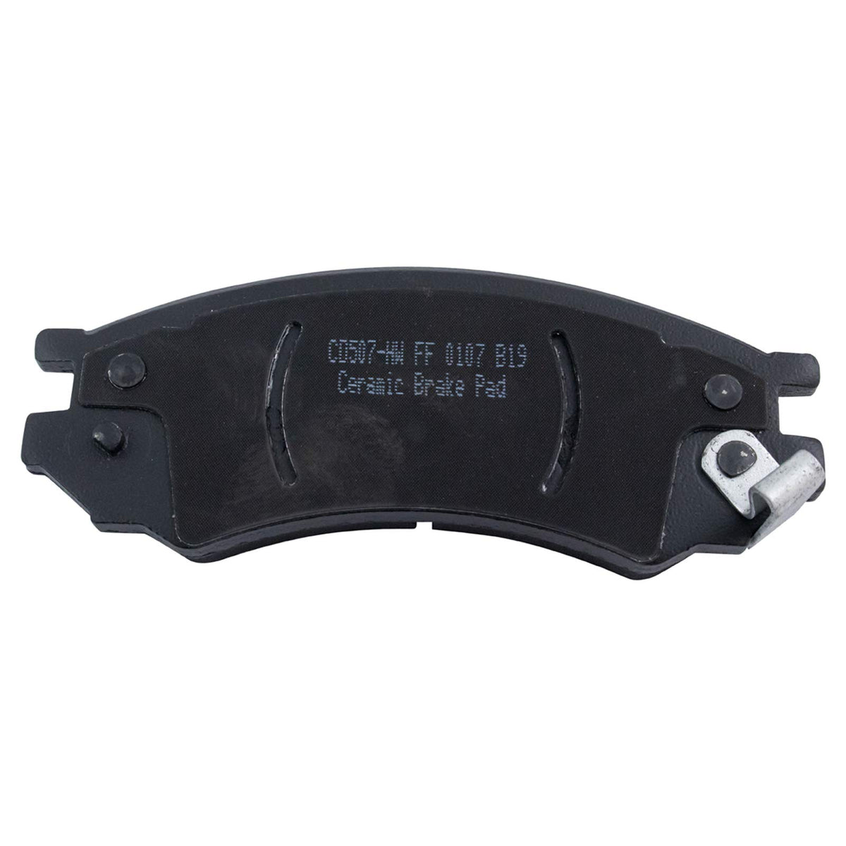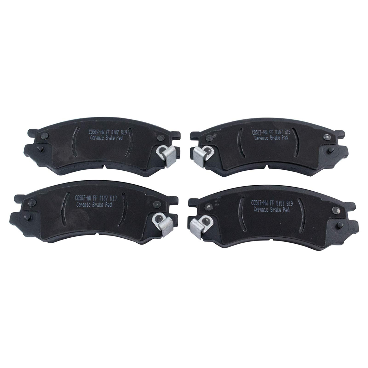 Ceramic Brake PadsFitmentCompatible with: 1991-02 Saturn SL2 FrontCompatible with: 1991-02 Saturn SL1 FrontCompatible with: 1993-02 Saturn SC2 FrontCompatible with: 1991-02 Saturn SL FrontCompatible with: 1993-02 Saturn SC1 FrontCompatible with: 1993-01 Saturn SW2 FrontCompatible with: 1993-99 Saturn SW1 FrontCompatible with: 1991-92 Saturn SC FrontProduct AttributesInner Pad Friction Material Thickness: 0.39 inOuter Pad Friction Material Thickness: 0.39 inOuter Pad Overall Thickness: 0.63 inInner Pad Overall Thickness: 0.63 inOuter Pad Height: 1.97 inInner Pad Height: 1.97 inInner Pad Friction Material Thickness: 10 mmOuter Pad Friction Material Thickness: 10 mmOuter Pad Width: 128 mmInner Pad Width: 128 mmOuter Pad Overall Thickness: 16 mmInner Pad Overall Thickness: 16 mmPad Quantity: 4Outer Pad Width: 5.04 inInner Pad Width: 5.04 inOuter Pad Height: 50 mmInner Pad Height: 50 mmBacking Plate Color: BlackPad Shim Color: BlackFriction Material Composition: CeramicPad Shim Material: FiberFriction Material Attachment: Integrally MoldedPad Wear Sensor Type: MechanicalBetter Brakes Law SAE Environmental Compliance Level: NBolts Included: NoAbutment Clips Included: NoBacking Material: SteelWear Indicator Attached: YesPad Shims Included: YesPad Wear Sensor Included: YesChamfered Edges: YesPrepared For Pad Wear Sensor: YesFriction Surface Scorched: YesMounting Hardware Included: YesSlotted: YesBrake Lubricant Included: YesBrake Pad Friction Material: CeramicIncludes: Contact Point GreaseIncludes: HardwareBrake Pad Bonding Type: Premium PosiProduct Features Positive Molded: Less dust resulting in clean wheels Thermal Scorched: Improved stopping performance Application Specific Design: Extended service life, no modifications Hardware and grease included for a complete repair Environmentally Compliant: Meets all Better Brake Law standardsItem DetailsTRQ brake pads are manufactured using premium raw materials and design standards to restore original performance. TRQ brake pads are positive molded and utilize a multi-layer shim for enhanced performance and service life. TRQs combination of materials and design ensures a low dust and low noise braking experience. TRQ recommends replacing your brake rotors when you replace your brake pads to ensure even wear of components and improved braking comfort. All products are fit and road-tested in our Massachusetts R&D facility to ensure we deliver on our promise of Trusted Reliable Quality.Reference NumbersRaybestos Brakes: EHT507H, MGD507CH, SGD507CSaturn: 21010544, 21012244, 21012690