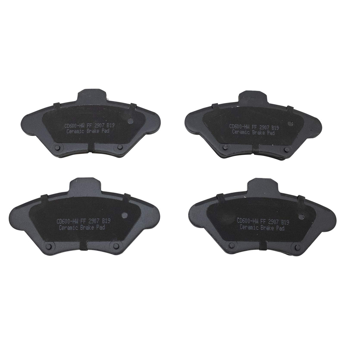 Ceramic Brake PadsFitmentCompatible with: 1994-98 Ford Mustang Base Model V6 3.8L FrontCompatible with: 1994-98 Ford Mustang GT FrontCompatible with: 1996-97 Ford Thunderbird without Sport Suspension FrontCompatible with: 1993-95 Ford Thunderbird FrontCompatible with: 1996-97 Mercury Cougar without Sport Suspension FrontCompatible with: 1993-95 Mercury Cougar FrontProduct AttributesInner Pad Overall Thickness: 0.67 inOuter Pad Overall Thickness: 0.67 inOuter Pad Friction Material Thickness: 0.67 inInner Pad Friction Material Thickness: 0.67 inOuter Pad Height: 137 mmInner Pad Height: 137 mmOuter Pad Overall Thickness: 17 mmInner Pad Friction Material Thickness: 17 mmOuter Pad Friction Material Thickness: 17 mmInner Pad Overall Thickness: 17 mmOuter Pad Width: 2.80 inInner Pad Width: 2.80 inPad Quantity: 4Outer Pad Height: 5.39 inInner Pad Height: 5.39 inOuter Pad Width: 71 mmInner Pad Width: 71 mmPad Shim Color: BlackBacking Plate Color: BlackFriction Material Attachment: BondedFriction Material Composition: CeramicBetter Brakes Law SAE Environmental Compliance Level: NFriction Surface Scorched: NoBolts Included: NoPrepared For Pad Wear Sensor: NoWear Indicator Attached: NoMounting Hardware Included: NoPad Wear Sensor Included: NoECE-R90 Certified: NoPad Shim Material: R-S-RGrade Type: RegularBacking Material: SteelChamfered Edges: YesPad Shims Included: YesBrake Lubricant Included: YesAbutment Clips Included: YesSlotted: YesBrake Pad Friction Material: CeramicIncludes: Contact Point GreaseIncludes: HardwareBrake Pad Bonding Type: Premium PosiProduct Features Positive Molded: Less dust resulting in clean wheels Thermal Scorched: Improved stopping performance Application Specific Design: Extended service life, no modifications Hardware and grease included for a complete repair Environmentally Compliant: Meets all Better Brake Law standardsItem DetailsTRQ brake pads are manufactured using premium raw materials and design standards to restore original performance. TRQ brake pads are positive molded and utilize a multi-layer shim for enhanced performance and service life. TRQs combination of materials and design ensures a low dust and low noise braking experience. TRQ recommends replacing your brake rotors when you replace your brake pads to ensure even wear of components and improved braking comfort. All products are fit and road-tested in our Massachusetts R&D facility to ensure we deliver on our promise of Trusted Reliable Quality.Reference NumbersFord: F3SZ2001B, F4ZZ2001A, F6SZ2001BAMercury: F3SZ2001B, F6SZ2001BARaybestos Brakes: PGD600C, SGD600C