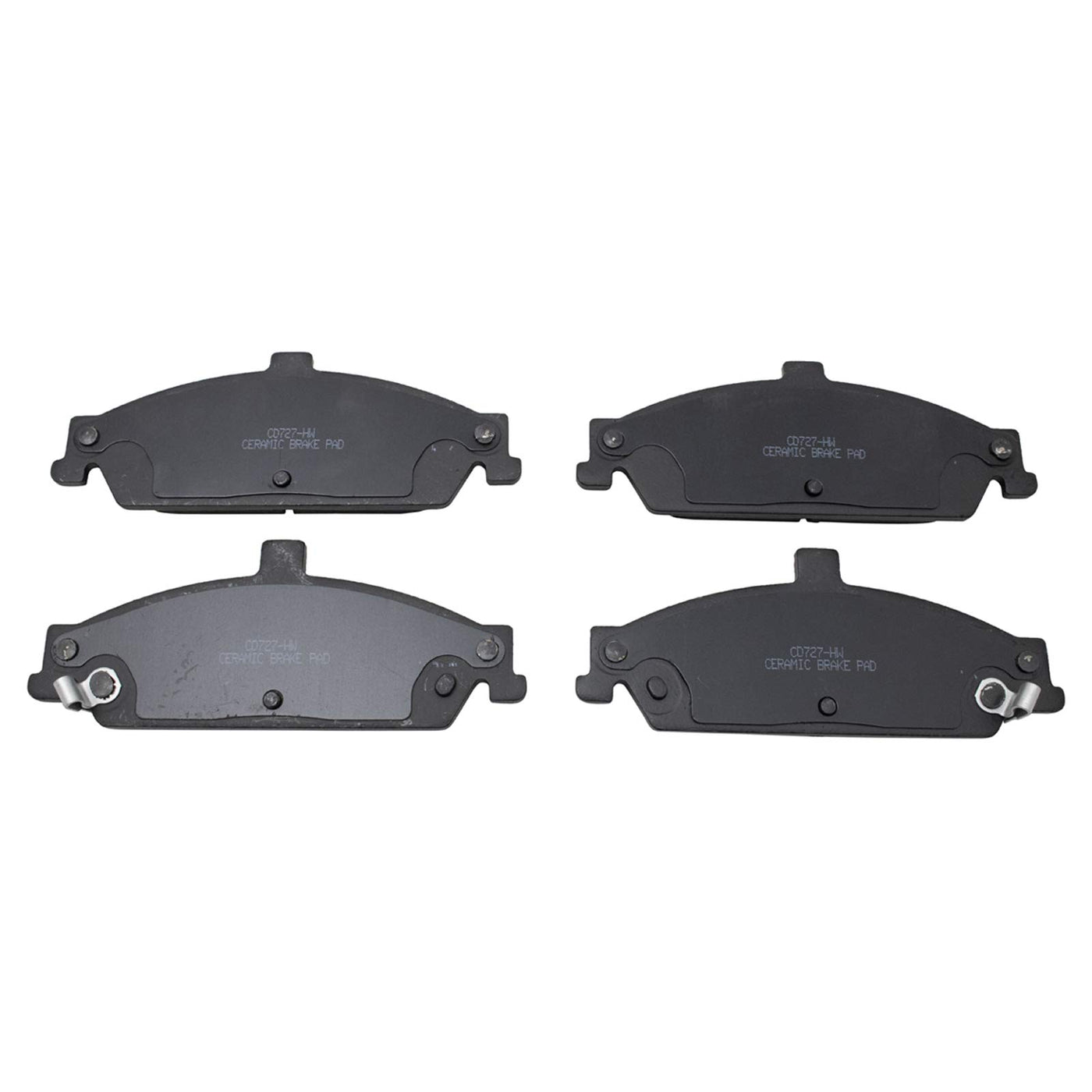 Ceramic Brake PadsFitmentCompatible with: 1999-05 Pontiac Grand Am FrontCompatible with: 1997-03 Chevrolet Malibu FrontCompatible with: 1999-04 Olds Alero FrontCompatible with: 2004-05 Chevrolet Classic FrontCompatible with: 1998-99 Olds Cutlass FrontCompatible with: 1997 Olds Cutlass FrontProduct AttributesInner Pad Friction Material Thickness: 0.43 inOuter Pad Friction Material Thickness: 0.47 inInner Pad Overall Thickness: 0.67 inOuter Pad Overall Thickness: 0.67 inInner Pad Friction Material Thickness: 11 mmOuter Pad Friction Material Thickness: 12 mmOuter Pad Width: 161 mmInner Pad Width: 161 mmInner Pad Overall Thickness: 17 mmOuter Pad Overall Thickness: 17 mmOuter Pad Height: 2.28 inInner Pad Height: 2.48 inPad Quantity: 4Outer Pad Height: 58 mmOuter Pad Width: 6.34 inInner Pad Width: 6.34 inInner Pad Height: 63 mmFriction Material Attachment: BondedFriction Material Composition: CeramicPad Wear Sensor Type: MechanicalGrade Type: RegularFriction Surface Scorched: YesPad Shims Included: YesPad Wear Sensor Included: YesBrake Lubricant Included: YesAbutment Clips Included: YesBrake Pad Friction Material: CeramicIncludes: Contact Point GreaseIncludes: HardwareBrake Pad Bonding Type: Premium PosiProduct Features Positive Molded: Less dust resulting in clean wheels Thermal Scorched: Improved stopping performance Application Specific Design: Extended service life, no modifications Hardware and grease included for a complete repair Environmentally Compliant: Meets all Better Brake Law standardsItem DetailsTRQ brake pads are manufactured using premium raw materials and design standards to restore original performance. TRQ brake pads are positive molded and utilize a multi-layer shim for enhanced performance and service life. TRQs combination of materials and design ensures a low dust and low noise braking experience. TRQ recommends replacing your brake rotors when you replace your brake pads to ensure even wear of components and improved braking comfort. All products are fit and road-tested in our Massachusetts R&D facility to ensure we deliver on our promise of Trusted Reliable Quality.Reference NumbersRaybestos Brakes: EHT727H, MGD727CH