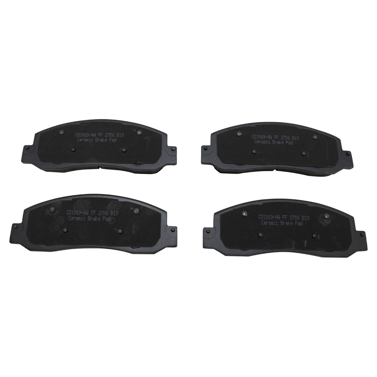 Ceramic Brake PadsFitmentCompatible with: 2005-11 Ford F250 Super Duty Truck FrontCompatible with: 2005-12 Ford F350 Super Duty Truck FrontCompatible with: 2012 Ford F250 Super Duty Truck To 10/20/12 Production Date FrontProduct AttributesOuter Pad Friction Material Thickness: 0.79 inInner Pad Friction Material Thickness: 0.79 inOuter Pad Overall Thickness: 0.83 inInner Pad Overall Thickness: 0.83 inOuter Pad Height: 177 mmInner Pad Height: 177 mmOuter Pad Width: 2.48 inInner Pad Width: 2.48 inOuter Pad Friction Material Thickness: 20 mmInner Pad Friction Material Thickness: 20 mmOuter Pad Overall Thickness: 21 mmInner Pad Overall Thickness: 21 mmPad Quantity: 4Outer Pad Height: 6.97 inInner Pad Height: 6.97 inInner Pad Width: 63 mmOuter Pad Width: 63 mmBacking Plate Color: BlackPad Shim Color: BlackFriction Material Attachment: BondedFriction Material Composition: CeramicBetter Brakes Law SAE Environmental Compliance Level: NECE-R90 Certified: NoMounting Hardware Included: NoPad Wear Sensor Included: NoBolts Included: NoWear Indicator Attached: NoPrepared For Pad Wear Sensor: NoFriction Surface Scorched: NoPad Shim Material: R-S-RGrade Type: RegularBacking Material: SteelBrake Lubricant Included: YesPad Shims Included: YesChamfered Edges: YesSlotted: YesAbutment Clips Included: YesBrake Pad Friction Material: CeramicIncludes: Contact Point GreaseIncludes: HardwareBrake Pad Bonding Type: Premium PosiProduct Features Positive Molded: Less dust resulting in clean wheels Thermal Scorched: Improved stopping performance Application Specific Design: Extended service life, no modifications Hardware and grease included for a complete repair Environmentally Compliant: Meets all Better Brake Law standardsItem DetailsTRQ brake pads are manufactured using premium raw materials and design standards to restore original performance. TRQ brake pads are positive molded and utilize a multi-layer shim for enhanced performance and service life. TRQs combination of materials and design ensures a low dust and low noise braking experience. TRQ recommends replacing your brake rotors when you replace your brake pads to ensure even wear of components and improved braking comfort. All products are fit and road-tested in our Massachusetts R&D facility to ensure we deliver on our promise of Trusted Reliable Quality.Reference NumbersFord: 5C3Z2001AA, 5C3Z2001CARaybestos Brakes: PGD1069M