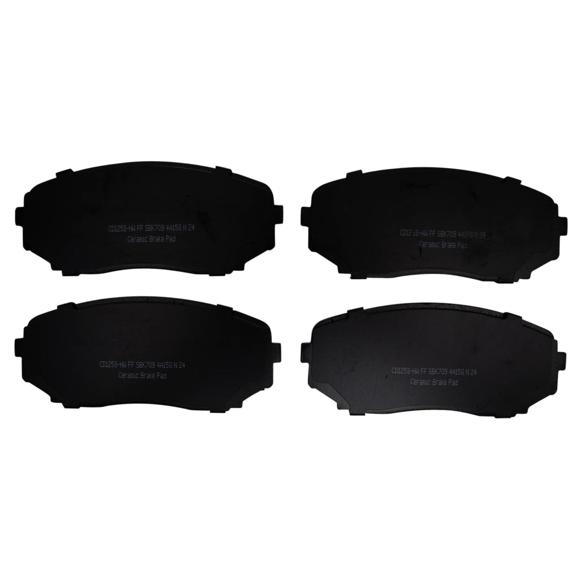Ceramic Brake PadsFitmentCompatible with: 2007-14 Ford Edge FrontCompatible with: 2007-21 Mazda CX-9 FrontCompatible with: 2007-15 Lincoln MKX FrontCompatible with: 2019 Mazda CX-5 Grand Touring Reserve FrontCompatible with: 2019 Mazda CX-5 Signature FrontCompatible with: 2007-12 Mazda CX-7 FrontProduct AttributesInner Pad Friction Material Thickness: 0.47 inOuter Pad Friction Material Thickness: 0.47 inInner Pad Overall Thickness: 0.67 inOuter Pad Overall Thickness: 0.67 inInner Pad Friction Material Thickness: 12 mmOuter Pad Friction Material Thickness: 12 mmOuter Pad Width: 139 mmInner Pad Width: 139 mmOuter Pad Overall Thickness: 17 mmInner Pad Overall Thickness: 17 mmInner Pad Height: 2.28 inOuter Pad Height: 2.28 inPad Quantity: 4Inner Pad Width: 5.47 inOuter Pad Width: 5.47 inInner Pad Height: 58 mmOuter Pad Height: 58 mmFriction Material Attachment: BondedFriction Material Composition: CeramicPad Wear Sensor Included: NoGrade Type: RegularFriction Surface Scorched: YesPad Shims Included: YesBrake Lubricant Included: YesAbutment Clips Included: YesBrake Pad Friction Material: CeramicIncludes: Contact Point GreaseIncludes: HardwareBrake Pad Bonding Type: Premium PosiProduct Features Positive Molded: Less dust resulting in clean wheels Thermal Scorched: Improved stopping performance Application Specific Design: Extended service life, no modifications Hardware and grease included for a complete repair Environmentally Compliant: Meets all Better Brake Law standardsItem DetailsTRQ brake pads are manufactured using premium raw materials and design standards to restore original performance. TRQ brake pads are positive molded and utilize a multi-layer shim for enhanced performance and service life. TRQs combination of materials and design ensures a low dust and low noise braking experience. TRQ recommends replacing your brake rotors when you replace your brake pads to ensure even wear of components and improved braking comfort. All products are fit and road-tested in our Massachusetts R&D facility to ensure we deliver on our promise of Trusted Reliable Quality.Reference NumbersFord: 7T4Z2001A, BT4Z2001A, BT4Z2001BLincoln: 7T4Z2001A, BT4Z2001A, BT4Z2001BMazda: L2Y63323Z, L2Y63328Z, L2Y63328ZA, TKY83328ZRaybestos Brakes: EHT1258H, MGD1258CH, SGD1258C