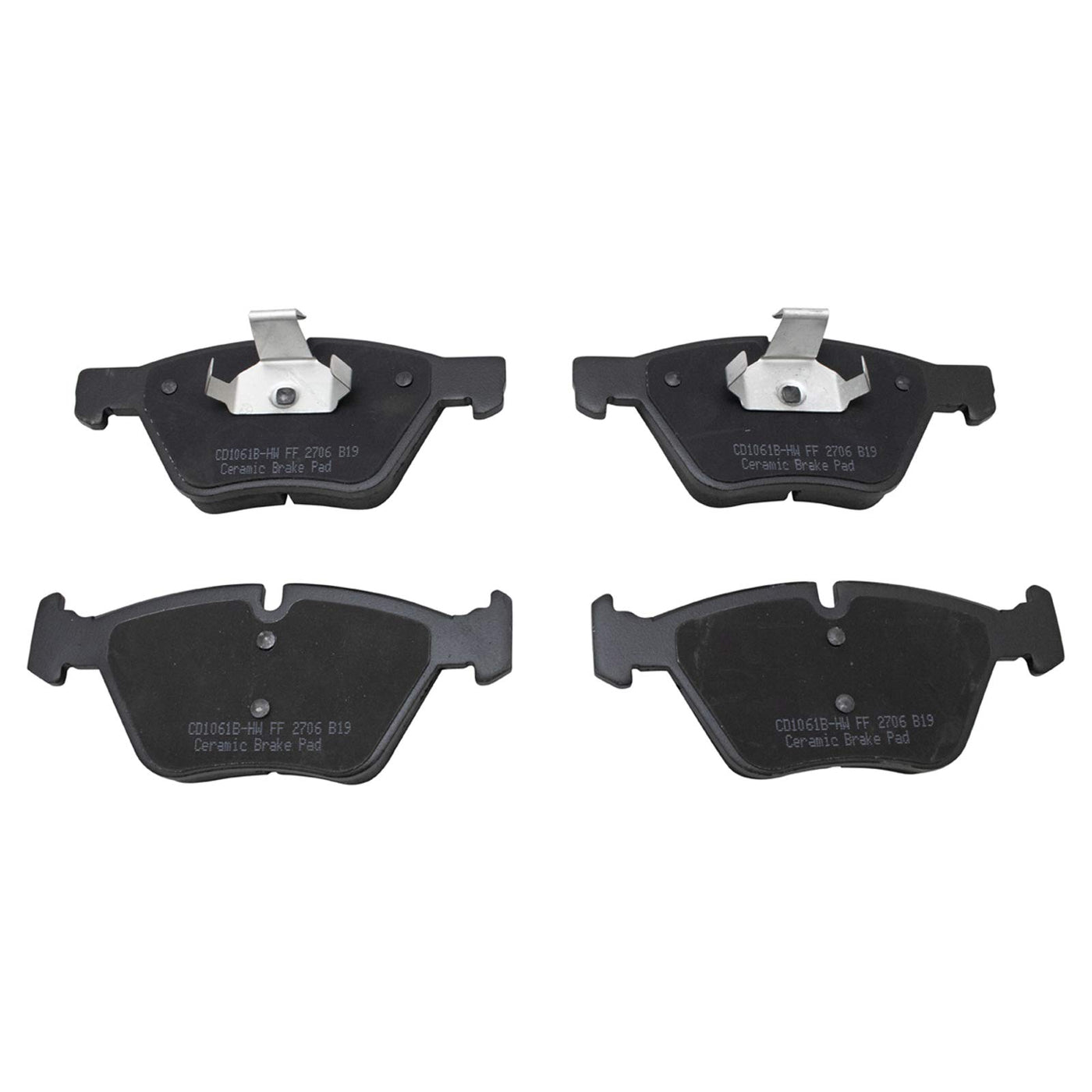 Ceramic Brake PadsFitmentCompatible with: 2007 BMW 328i To 8/31/07 Production Date FrontCompatible with: 2006 BMW 325i FrontCompatible with: 2008-13 BMW 128i FrontCompatible with: 2007 BMW 328xi To 8/31/07 Production Date FrontCompatible with: 2006 BMW 330i FrontCompatible with: 2011-16 BMW Z4 sDrive35i FrontCompatible with: 2006 BMW 325Xi FrontCompatible with: 2012-16 BMW Z4 sDrive28i FrontCompatible with: 2007 BMW 525i FrontCompatible with: 2004 BMW 525i Manual Transmission FrontCompatible with: 2006 BMW 330Xi FrontCompatible with: 2011 BMW Z4 sDrive30i FrontCompatible with: 2009-10 BMW Z4 FrontCompatible with: 2007 BMW 335xi From 10/01/07 Production Date FrontProduct AttributesInner Pad Friction Material Thickness: 0.51 inOuter Pad Friction Material Thickness: 0.51 inInner Pad Overall Thickness: 0.75 inOuter Pad Overall Thickness: 0.75 inInner Pad Friction Material Thickness: 13 mmOuter Pad Friction Material Thickness: 13 mmOuter Pad Width: 155 mmInner Pad Width: 155 mmOuter Pad Overall Thickness: 19 mmInner Pad Overall Thickness: 19 mmOuter Pad Height: 2.52 inInner Pad Height: 2.52 inPad Quantity: 4Outer Pad Width: 6.10 inInner Pad Width: 6.10 inOuter Pad Height: 64 mmInner Pad Height: 64 mmBacking Plate Color: BlackPad Shim Color: BlackFriction Material Composition: CeramicPad Shim Material: FiberFriction Material Attachment: Integrally MoldedBetter Brakes Law SAE Environmental Compliance Level: NWear Indicator Attached: NoPad Wear Sensor Included: NoBolts Included: NoPrepared For Pad Wear Sensor: NoBacking Material: SteelPad Shims Included: YesAbutment Clips Included: YesMounting Hardware Included: YesSlotted: YesBrake Lubricant Included: YesChamfered Edges: YesFriction Surface Scorched: YesBrake Pad Friction Material: CeramicIncludes: Contact Point GreaseIncludes: HardwareBrake Pad Bonding Type: Premium PosiProduct Features Positive Molded: Less dust resulting in clean wheels Thermal Scorched: Improved stopping performance Application Specific Design: Extended service life, no modifications Hardware and grease included for a complete repair Environmentally Compliant: Meets all Better Brake Law standardsItem DetailsTRQ brake pads are manufactured using premium raw materials and design standards to restore original performance. TRQ brake pads are positive molded and utilize a multi-layer shim for enhanced performance and service life. TRQs combination of materials and design ensures a low dust and low noise braking experience. TRQ recommends replacing your brake rotors when you replace your brake pads to ensure even wear of components and improved braking comfort. All products are fit and road-tested in our Massachusetts R&D facility to ensure we deliver on our promise of Trusted Reliable Quality.Reference NumbersRaybestos Brakes: EHT1061