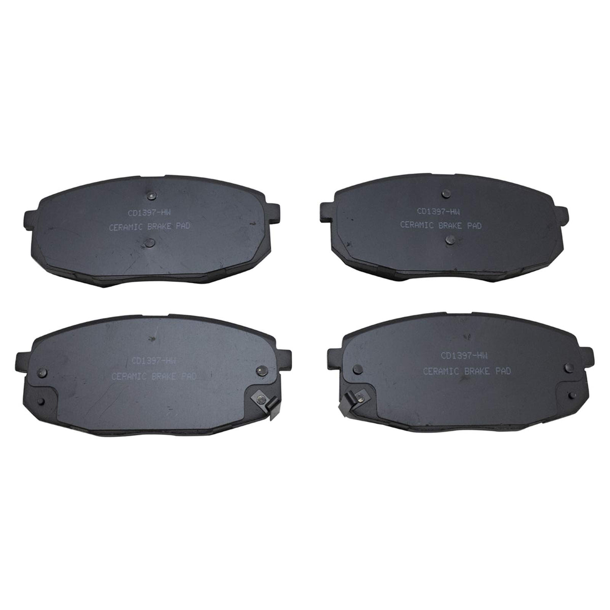 Ceramic Brake PadsFitmentCompatible with: 2014-16 Kia Soul FrontCompatible with: 2010-12 Hyundai Elantra Touring SE FrontCompatible with: 2010-12 Hyundai Elantra Touring GLS FrontCompatible with: 2010-13 Kia Forte FrontCompatible with: 2009 Hyundai Elantra Touring FrontCompatible with: 2010-13 Kia Forte Koup FrontProduct AttributesInner Pad Friction Material Thickness: 0.63 inOuter Pad Friction Material Thickness: 0.63 inInner Pad Overall Thickness: 0.67 inOuter Pad Overall Thickness: 0.67 inOuter Pad Height: 130 mmInner Pad Height: 130 mmInner Pad Friction Material Thickness: 16 mmOuter Pad Friction Material Thickness: 16 mmOuter Pad Overall Thickness: 17 mmInner Pad Overall Thickness: 17 mmInner Pad Width: 2.28 inOuter Pad Width: 2.28 inPad Quantity: 4Inner Pad Height: 5.12 inOuter Pad Height: 5.12 inInner Pad Width: 58 mmOuter Pad Width: 58 mmBacking Plate Color: BlackPad Shim Color: BlackFriction Material Attachment: BondedFriction Material Composition: CeramicPad Wear Sensor Type: MechanicalBetter Brakes Law SAE Environmental Compliance Level: NBolts Included: NoFriction Surface Scorched: NoECE-R90 Certified: NoMounting Hardware Included: NoPad Shim Material: R-S-RGrade Type: RegularBacking Material: SteelBrake Lubricant Included: YesPad Wear Sensor Included: YesChamfered Edges: YesPrepared For Pad Wear Sensor: YesSlotted: YesAbutment Clips Included: YesPad Shims Included: YesWear Indicator Attached: YesBrake Pad Friction Material: CeramicIncludes: Contact Point GreaseIncludes: HardwareBrake Pad Bonding Type: Premium PosiProduct Features Positive Molded: Less dust resulting in clean wheels Thermal Scorched: Improved stopping performance Application Specific Design: Extended service life, no modifications Hardware and grease included for a complete repair Environmentally Compliant: Meets all Better Brake Law standardsItem DetailsTRQ brake pads are manufactured using premium raw materials and design standards to restore original performance. TRQ brake pads are positive molded and utilize a multi-layer shim for enhanced performance and service life. TRQs combination of materials and design ensures a low dust and low noise braking experience. TRQ recommends replacing your brake rotors when you replace your brake pads to ensure even wear of components and improved braking comfort. All products are fit and road-tested in our Massachusetts R&D facility to ensure we deliver on our promise of Trusted Reliable Quality.Reference NumbersHyundai: 581012LA00, 581012LA10Kia: 581011MA00, 581011MA20, 581011MA60, 58101B2A00Raybestos Brakes: EHT1397H, MGD1397CH, SGD1397C