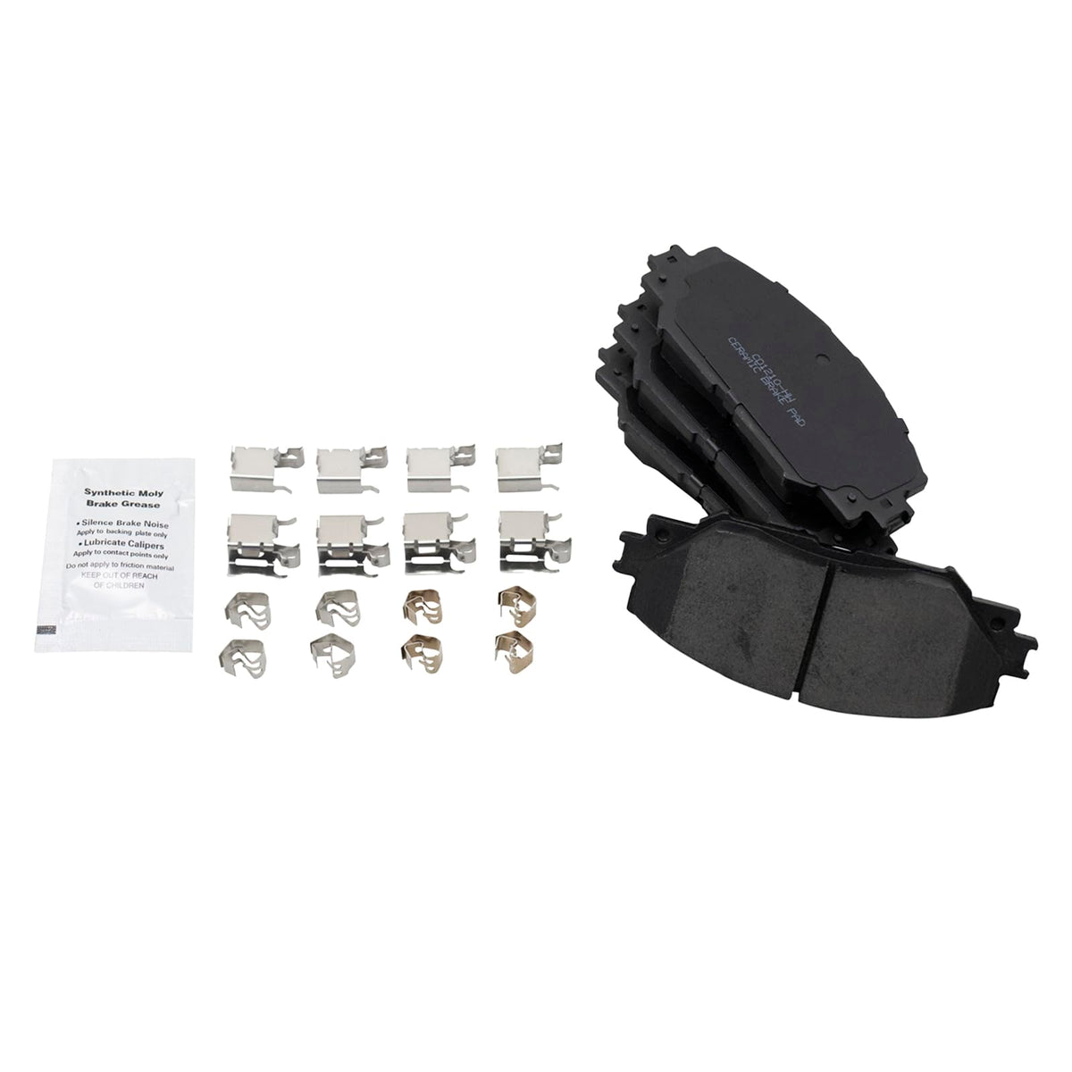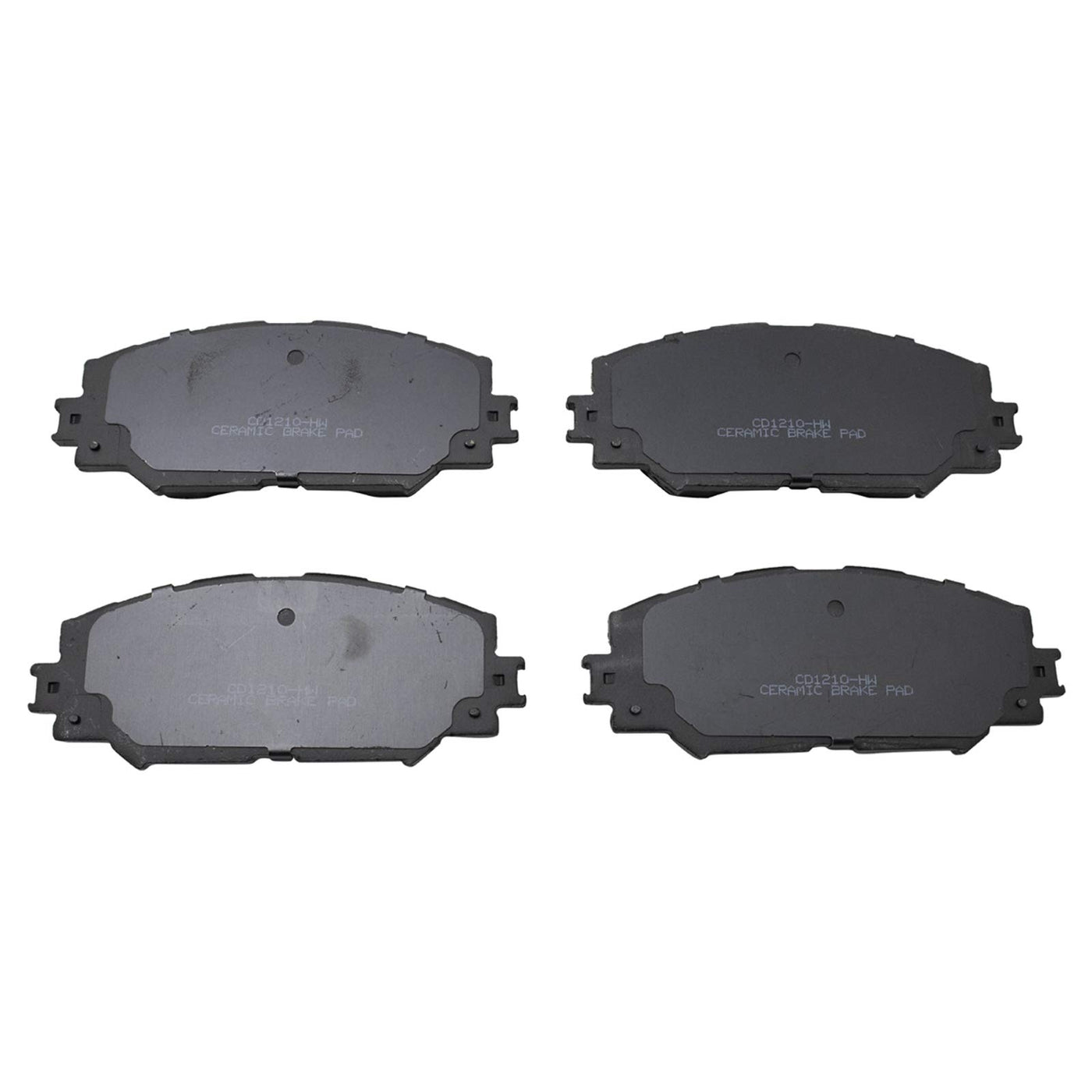 Ceramic Brake PadsFitmentCompatible with: 2010-19 Toyota Corolla FrontCompatible with: 2013-18 Toyota Rav4 LE L4 2.5L FrontCompatible with: 2009-12 Toyota Rav4 L4 2.5L without 3rd Row Seating FrontCompatible with: 2006-08 Toyota Rav4 L4 2.4L without 3rd Row Seating FrontCompatible with: 2009 Toyota Corolla Base Model FrontCompatible with: 2009 Toyota Corolla S FrontCompatible with: 2009 Toyota Corolla LE FrontCompatible with: 2009 Toyota Corolla XLE FrontCompatible with: 2009 Toyota Corolla XRS FrontCompatible with: 2008-15 Scion xB FrontCompatible with: 2012-18 Toyota Prius V FrontCompatible with: 2008-14 Scion xD FrontCompatible with: 2009-14 Toyota Matrix L4 1.8L FrontCompatible with: 2009-10 Pontiac Vibe L4 1.8L FrontCompatible with: 2010-12 Lexus HS250h FrontProduct AttributesInner Pad Friction Material Thickness: 0.47 inOuter Pad Friction Material Thickness: 0.47 inInner Pad Overall Thickness: 0.71 inOuter Pad Overall Thickness: 0.71 inInner Pad Friction Material Thickness: 12 mmOuter Pad Friction Material Thickness: 12 mmOuter Pad Width: 139 mmInner Pad Width: 139 mmInner Pad Overall Thickness: 18 mmOuter Pad Overall Thickness: 18 mmInner Pad Height: 2.20 inOuter Pad Height: 2.20 inPad Quantity: 4Outer Pad Width: 5.47 inInner Pad Width: 5.47 inOuter Pad Height: 56 mmInner Pad Height: 56 mmFriction Material Attachment: BondedFriction Material Composition: CeramicPad Wear Sensor Included: NoGrade Type: RegularPad Shims Included: YesFriction Surface Scorched: YesAbutment Clips Included: YesBrake Lubricant Included: YesBrake Pad Friction Material: CeramicIncludes: Contact Point GreaseIncludes: HardwareBrake Pad Bonding Type: Premium PosiProduct Features Positive Molded: Less dust resulting in clean wheels Thermal Scorched: Improved stopping performance Application Specific Design: Extended service life, no modifications Hardware and grease included for a complete repair Environmentally Compliant: Meets all Better Brake Law standardsItem DetailsTRQ brake pads are manufactured using premium raw materials and design standards to restore original performance. TRQ brake pads are positive molded and utilize a multi-layer shim for enhanced performance and service life. TRQs combination of materials and design ensures a low dust and low noise braking experience. TRQ recommends replacing your brake rotors when you replace your brake pads to ensure even wear of components and improved braking comfort. All products are fit and road-tested in our Massachusetts R&D facility to ensure we deliver on our promise of Trusted Reliable Quality.Reference NumbersLexus: 446542160Pontiac: 19184912Raybestos Brakes: EHT1210H, MGD1210CHScion: 446502220, 446542160, 446542200Toyota: 04465-AZ114, 044650R010, 446502220, 446502240, 446502410, 446542160, 446542200