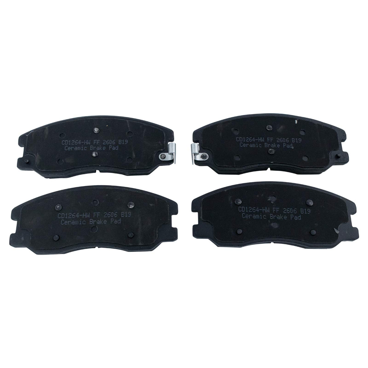 Ceramic Brake PadsFitmentCompatible with: 2007-09 Chevrolet Equinox FrontCompatible with: 2012-15 Chevrolet Captiva Sport FrontCompatible with: 2008-10 Saturn Vue FrontCompatible with: 2007-09 Pontiac Torrent FrontCompatible with: 2007-09 Suzuki XL-7 FrontProduct AttributesOuter Pad Friction Material Thickness: 0.63 inInner Pad Friction Material Thickness: 0.63 inInner Pad Overall Thickness: 0.63 inOuter Pad Overall Thickness: 0.63 inInner Pad Height: 149 mmOuter Pad Height: 149 mmOuter Pad Overall Thickness: 16 mmInner Pad Friction Material Thickness: 16 mmOuter Pad Friction Material Thickness: 16 mmInner Pad Overall Thickness: 16 mmInner Pad Width: 2.44 inOuter Pad Width: 2.44 inPad Quantity: 4Outer Pad Height: 5.87 inInner Pad Height: 5.87 inInner Pad Width: 62 mmOuter Pad Width: 62 mmBacking Plate Color: BlackPad Shim Color: BlackFriction Material Attachment: BondedFriction Material Composition: CeramicPad Wear Sensor Type: MechanicalBetter Brakes Law SAE Environmental Compliance Level: NFriction Surface Scorched: NoMounting Hardware Included: NoBolts Included: NoECE-R90 Certified: NoPad Shim Material: R-S-RGrade Type: RegularBacking Material: SteelBrake Lubricant Included: YesWear Indicator Attached: YesPad Wear Sensor Included: YesChamfered Edges: YesPrepared For Pad Wear Sensor: YesPad Shims Included: YesSlotted: YesAbutment Clips Included: YesBrake Pad Friction Material: CeramicIncludes: Contact Point GreaseIncludes: HardwareBrake Pad Bonding Type: Premium PosiProduct Features Positive Molded: Less dust resulting in clean wheels Thermal Scorched: Improved stopping performance Application Specific Design: Extended service life, no modifications Hardware and grease included for a complete repair Environmentally Compliant: Meets all Better Brake Law standardsItem DetailsTRQ brake pads are manufactured using premium raw materials and design standards to restore original performance. TRQ brake pads are positive molded and utilize a multi-layer shim for enhanced performance and service life. TRQs combination of materials and design ensures a low dust and low noise braking experience. TRQ recommends replacing your brake rotors when you replace your brake pads to ensure even wear of components and improved braking comfort. All products are fit and road-tested in our Massachusetts R&D facility to ensure we deliver on our promise of Trusted Reliable Quality.Reference NumbersChevrolet: 19149903, 19168899Pontiac: 19149903, 19168899Raybestos Brakes: EHT1264H, MGD1264CH, SGD1264CSaturn: 19168899Suzuki: 5520078J00, 5520078J01
