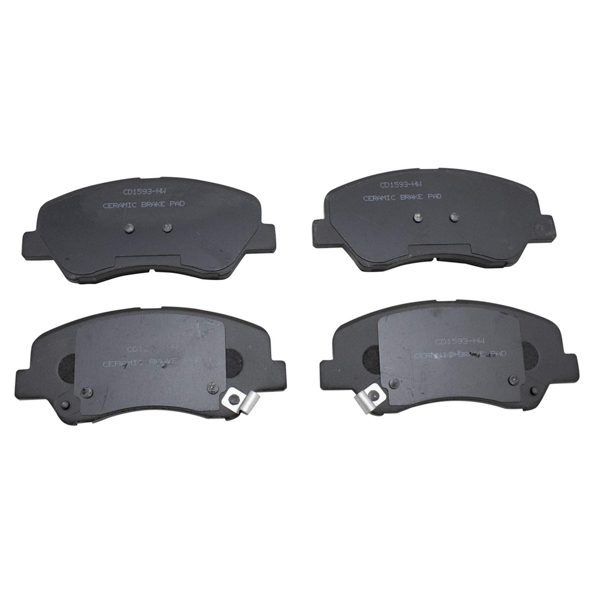 Ceramic Brake PadsFitmentCompatible with: 2012-17 Hyundai Accent FrontCompatible with: 2012-17 Kia Rio FrontProduct AttributesOuter Pad Friction Material Thickness: 0.43 inInner Pad Friction Material Thickness: 0.43 inInner Pad Overall Thickness: 0.67 inOuter Pad Overall Thickness: 0.67 inInner Pad Friction Material Thickness: 11 mmOuter Pad Friction Material Thickness: 11 mmOuter Pad Width: 133 mmInner Pad Width: 133 mmOuter Pad Overall Thickness: 17 mmInner Pad Overall Thickness: 17 mmInner Pad Height: 2.28 inOuter Pad Height: 2.28 inPad Quantity: 4Inner Pad Width: 5.24 inOuter Pad Width: 5.24 inOuter Pad Height: 58 mmInner Pad Height: 58 mmFriction Material Attachment: BondedFriction Material Composition: CeramicPad Wear Sensor Type: MechanicalGrade Type: RegularFriction Surface Scorched: YesPad Shims Included: YesPad Wear Sensor Included: YesAbutment Clips Included: YesBrake Lubricant Included: YesBrake Pad Friction Material: CeramicIncludes: Contact Point GreaseIncludes: HardwareBrake Pad Bonding Type: Premium PosiProduct Features Positive Molded: Less dust resulting in clean wheels Thermal Scorched: Improved stopping performance Application Specific Design: Extended service life, no modifications Hardware and grease included for a complete repair Environmentally Compliant: Meets all Better Brake Law standardsItem DetailsTRQ brake pads are manufactured using premium raw materials and design standards to restore original performance. TRQ brake pads are positive molded and utilize a multi-layer shim for enhanced performance and service life. TRQs combination of materials and design ensures a low dust and low noise braking experience. TRQ recommends replacing your brake rotors when you replace your brake pads to ensure even wear of components and improved braking comfort. All products are fit and road-tested in our Massachusetts R&D facility to ensure we deliver on our promise of Trusted Reliable Quality.Reference NumbersDodge: 581011RA10Hyundai: 581011RA00, 581011RA10Kia: 581011RA01Raybestos Brakes: EHT1593H, MGD1593CH, SGD1593C