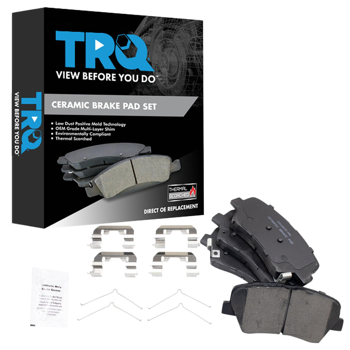 Ceramic Brake PadsFitmentCompatible with: 2015-20 Kia Sorento FrontCompatible with: 2017-18 Hyundai Santa Fe Sport FrontCompatible with: 2015-17 Hyundai Azera FrontProduct AttributesOuter Pad Friction Material Thickness: 0.43 inInner Pad Friction Material Thickness: 0.43 inInner Pad Overall Thickness: 0.67 inOuter Pad Overall Thickness: 0.67 inInner Pad Friction Material Thickness: 11 mmOuter Pad Friction Material Thickness: 11 mmOuter Pad Width: 133 mmInner Pad Width: 133 mmOuter Pad Overall Thickness: 17 mmInner Pad Overall Thickness: 17 mmOuter Pad Height: 2.36 inInner Pad Height: 2.36 inPad Quantity: 4Outer Pad Width: 5.24 inInner Pad Width: 5.24 inOuter Pad Height: 60 mmInner Pad Height: 60 mmFriction Material Attachment: BondedFriction Material Composition: CeramicPad Wear Sensor Type: MechanicalGrade Type: RegularPad Wear Sensor Included: YesAbutment Clips Included: YesBrake Lubricant Included: YesPad Shims Included: YesFriction Surface Scorched: YesBrake Pad Friction Material: CeramicIncludes: Contact Point GreaseIncludes: HardwareBrake Pad Bonding Type: Premium PosiProduct Features Positive Molded: Less dust resulting in clean wheels Thermal Scorched: Improved stopping performance Application Specific Design: Extended service life, no modifications Hardware and grease included for a complete repair Environmentally Compliant: Meets all Better Brake Law standardsItem DetailsTRQ brake pads are manufactured using premium raw materials and design standards to restore original performance. TRQ brake pads are positive molded and utilize a multi-layer shim for enhanced performance and service life. TRQs combination of materials and design ensures a low dust and low noise braking experience. TRQ recommends replacing your brake rotors when you replace your brake pads to ensure even wear of components and improved braking comfort. All products are fit and road-tested in our Massachusetts R&D facility to ensure we deliver on our promise of Trusted Reliable Quality.Reference NumbersKia: 58101C6A00Raybestos Brakes: EHT1815H