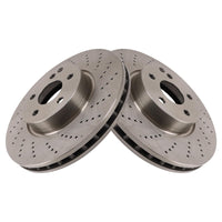 2 Piece Brake Rotor SetKit Includes(1) Front Driver Side Brake Rotor(1) Front Passenger Side Brake RotorFitmentCompatible with: 2010-12 Mercedes Benz E350 with Sport Package Front Driver & Passenger SideCompatible with: 2013-14 Mercedes Benz E350 207.459 with Sport Package Front Driver & Passenger SideCompatible with: 2015-16 Mercedes Benz E350 with Sport Package Front Driver & Passenger SideCompatible with: 2013-14 Mercedes Benz C300 with Sport Package Front Driver & Passenger SideCompatible with: 2008-15 Mercedes Benz C350 with Sport Package Front Driver & Passenger SideCompatible with: 2013-17 Mercedes Benz E400 with Sport Package Front Driver & Passenger SideCompatible with: 2014-16 Mercedes Benz E250 with Sport Package Front Driver & Passenger SideProduct AttributesStud/Lug Hole Diameter: 0.59 inMounting Bolt Hole Diameter: 0.59 inDiscard Thickness: 1.18 inNominal Thickness: 1.26 inMounting Bolt Hole Circle Diameter: 112 mmStud/Lug Hole Circle Diameter: 112 mmOutside Diameter: 12.68 inStud/Lug Hole Diameter: 15 mmMounting Bolt Hole Diameter: 15 mmOverall Height: 2.56 inCenter Hole Diameter: 2.64 inDiscard Thickness: 30 mmNominal Thickness: 32 mmOutside Diameter: 322 mmStud/Lug Hole Circle Diameter: 4.41 inMounting Bolt Hole Circle Diameter: 4.41 inStud/Lug Hole Quantity: 5Overall Height: 65 mmCenter Hole Diameter: 67 mmMaterial: Cast IronConventional Or Drum-In-Hat Type Rotor: ConventionalABS Tone Ring Included: NoRust Resistant Coating: NoGrade Type: Standard ReplacementSolid Or Vented Type Rotor: VentedSurface Type: X DrilledQuantity: 2 PieceRaces Included: NoProduct Features Direct Replacement: No modifications necessary G3000 Casting Alloy: Reduced noise and improved durability Non-Directional Surface Finish: Reduced vibrationsItem DetailsTRQ brake rotors are manufactured using premium G3000 casting alloy to reduce noise while braking and enhance service life. TRQ rotors have a non-directional finish to minimize the break-in period for new rotors and reduce vibrations throughout the rotors lifecycle. TRQ recommends replacing brake pads when you replace rotors to ensure even wear and improved component performance. All products are fit and road-tested in our Massachusetts R&D facility to ensure we deliver on our promise of Trusted Reliable Quality.Reference NumbersAdvance Auto Parts: N1000290863BRCAutoZone: 45471, 45471DGBrakeBest: 980799, 980799RGSDura Corp: BR34432, BR900886DuraGo: 900882, 900886, BR900882, BR900886Mercedes-Benz: 0004211112, 000421111207, 0004213012, 000421301207, 2044211012, 204421101239, 4211112, 421111207, A0004213012NAPA BRAKES: SDK6559Newtek Automotive USA: 34432, R886PowerStop: EBR1627EVCPromax: 14-34432Qualis: 45469, 45471, 95471Raybestos Brakes: 980799RUAP: R35110Winhere: 6620720DR