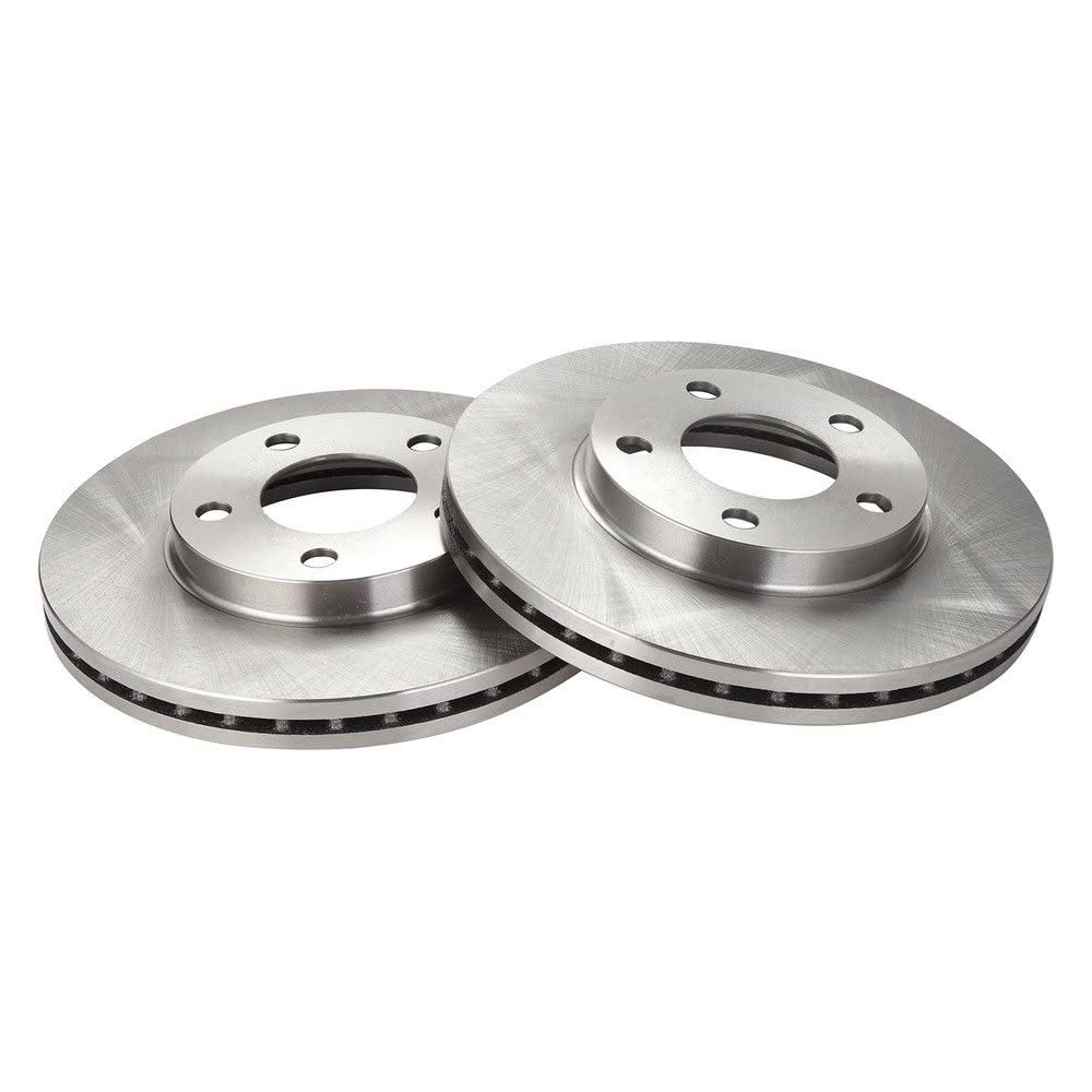 2 Piece Brake Rotor SetKit Includes(1) Front Driver Side Brake Rotor(1) Front Passenger Side Brake RotorFitmentCompatible with: 1994-01 Ford Mustang GT Front Driver & Passenger SideCompatible with: 1994-01 Ford Mustang Base Model Front Driver & Passenger SideCompatible with: 2003-04 Ford Mustang Base Model Front Driver & Passenger SideCompatible with: 2003-04 Ford Mustang GT Front Driver & Passenger SideCompatible with: 2002 Ford Mustang Front Driver & Passenger SideCompatible with: 1995 Ford Mustang GTS Front Driver & Passenger SideProduct AttributesMounting Bolt Hole Diameter: 0.59 inDiscard Thickness: 0.98 inNominal Thickness: 1.02 inOverall Height: 1.81 inOutside Diameter: 10.83 inMounting Bolt Hole Circle Diameter: 114 mmMounting Bolt Hole Diameter: 15 mmCenter Hole Diameter: 2.80 inDiscard Thickness: 25 mmNominal Thickness: 26 mmOutside Diameter: 275 mmMounting Bolt Hole Circle Diameter: 4.49 inOverall Height: 46 mmStud/Lug Hole Quantity: 5Center Hole Diameter: 71 mmMaterial: Cast IronConventional Or Drum-In-Hat Type Rotor: ConventionalRust Resistant Coating: NoABS Tone Ring Included: NoGrade Type: RegularSurface Type: SmoothSolid Or Vented Type Rotor: VentedQuantity: 2 PieceRaces Included: NoBrake Rotor Venting Type: VentedProduct Features Direct Replacement: No modifications necessary G3000 Casting Alloy: Reduced noise and improved durability Non-Directional Surface Finish: Reduced vibrationsItem DetailsTRQ brake rotors are manufactured using premium G3000 casting alloy to reduce noise while braking and enhance service life. TRQ rotors have a non-directional finish to minimize the break-in period for new rotors and reduce vibrations throughout the rotors lifecycle. TRQ recommends replacing brake pads when you replace rotors to ensure even wear and improved component performance. All products are fit and road-tested in our Massachusetts R&D facility to ensure we deliver on our promise of Trusted Reliable Quality.Reference NumbersAimco: 54011Bendix: PRT1911DuraGo: BR54011Hollander: 530-01802Raybestos Brakes: 66443, 66443FZN, 66443P, 66443PER, 66443RWagner: BD125405