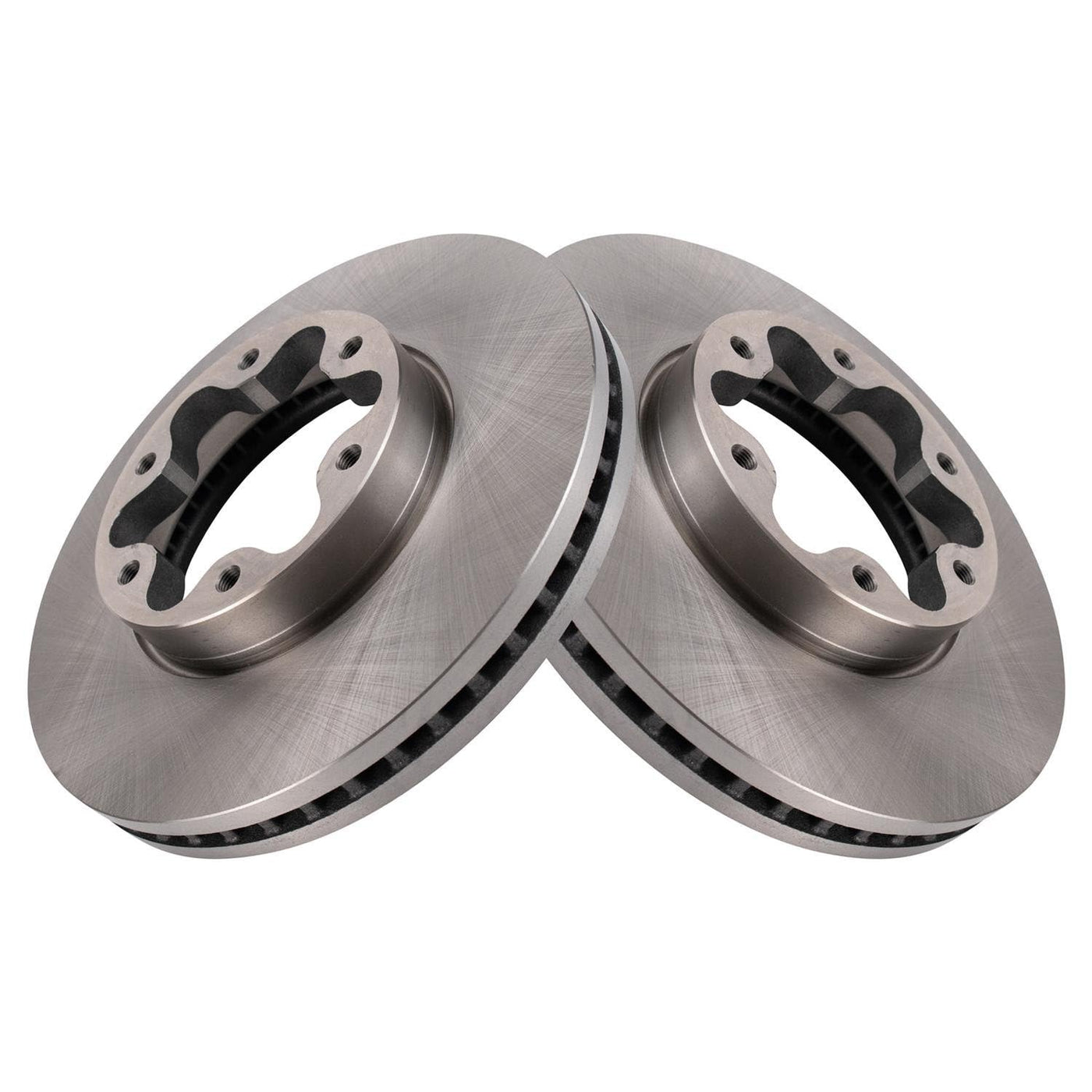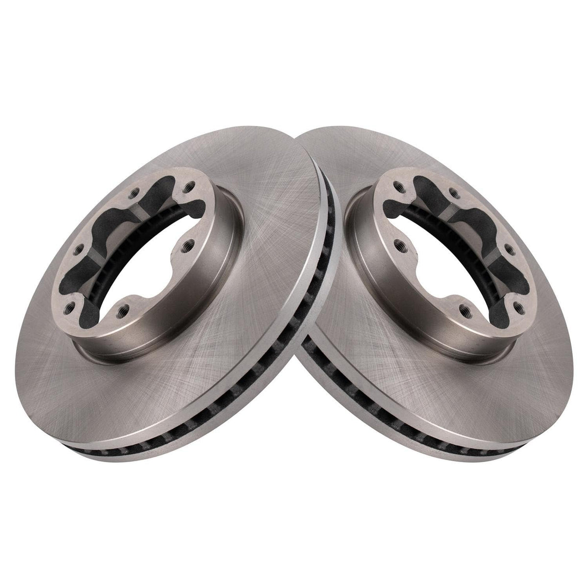 2 Piece Brake Rotor SetKit Includes(1) Front Driver Side Brake Rotor(1) Front Passenger Side Brake RotorFitmentCompatible with: 2020-23 Ford Transit T250 with Heavy Duty Front Axle with 6 Lug Wheels Front Driver & Passenger SideCompatible with: 2020-23 Ford Transit T350 with Heavy Duty Front Axle with 6 Lug Wheels Front Driver & Passenger SideCompatible with: 2020-23 Ford Transit T150 with Heavy Duty Front Axle with 6 Lug Wheels Front Driver & Passenger SideCompatible with: 2020-23 Ford Transit T350 HD with 4,630lb Front Axle with 302 mm Diameter Front Rotors with Dual Rear Wheels DRW Front Driver & Passenger SideProduct AttributesMounting Bolt Hole Diameter: 0.43 inDiscard Thickness: 1.18 inNominal Thickness: 1.30 inCenter Hole Diameter: 102 mmMounting Bolt Hole Diameter: 11 mmOutside Diameter: 11.89 inMounting Bolt Hole Circle Diameter: 132 mmOverall Height: 2.44 inDiscard Thickness: 30 mmOutside Diameter: 302 mmNominal Thickness: 33 mmCenter Hole Diameter: 4.02 inMounting Bolt Hole Circle Diameter: 5.20 inStud/Lug Hole Quantity: 6Overall Height: 62 mmMaterial: Cast IronConventional Or Drum-In-Hat Type Rotor: ConventionalABS Tone Ring Included: NoRust Resistant Coating: NoGrade Type: RegularSurface Type: SmoothSolid Or Vented Type Rotor: VentedFront Brake Rotor Diameter: 11.89 in. (302mm)Quantity: 2 PieceWheel Lug Count: 6 LugRaces Included: NoBrake Rotor Venting Type: VentedProduct Features Direct Replacement: No modifications necessary G3000 Casting Alloy: Reduced noise and improved durability Non-Directional Surface Finish: Reduced vibrationsItem DetailsTRQ brake rotors are manufactured using premium G3000 casting alloy to reduce noise while braking and enhance service life. TRQ rotors have a non-directional finish to minimize the break-in period for new rotors and reduce vibrations throughout the rotors lifecycle. TRQ recommends replacing brake pads when you replace rotors to ensure even wear and improved component performance. All products are fit and road-tested in our Massachusetts R&D facility to ensure we deliver on our promise of Trusted Reliable Quality.Reference NumbersDuraGo: BR901818Raybestos Brakes: 682686R