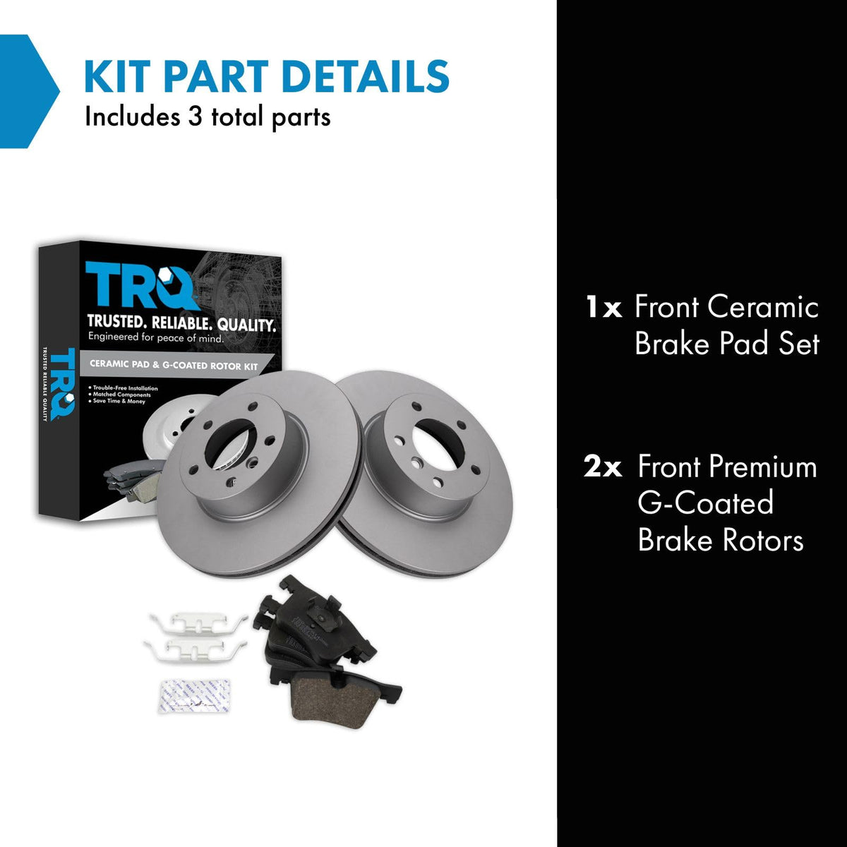 Trq Front Ceramic Disc Brake Pad & Replacement Coated Rotor Kit Compatible With Bmw