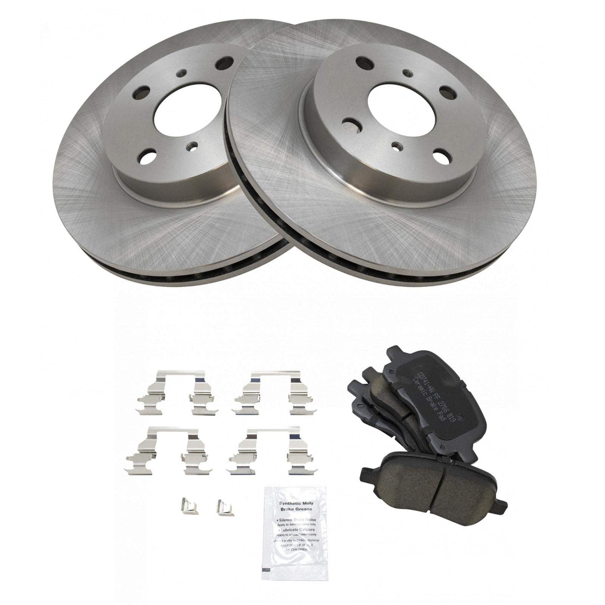 Ceramic Brake Pad & Rotor KitKit Includes(1) Front Ceramic Brake Pad Set(2) Front Brake RotorsFitmentCompatible with: 1998-02 Toyota Corolla FrontCompatible with: 1998-02 Chevrolet Prizm FrontProduct AttributesBrake Pad Friction Material: CeramicBrake Pad Bonding Type: Premium PosiProduct Features Positive Molded - Less dust resulting in clean wheels G3000 Casting Alloy - Reduced noise and improved wear resistance Application Specific Design - Extended service life, no modificationsItem DetailsTRQ brake kits are designed to restore your brake system to like-new performance. TRQ brake pads are positive molded, thermal scorched, chamfered, and utilize a multi-layer shim for enhanced performance and service life. TRQ rotors have a non-directional finish that reduces the break-in period for new rotors as well as reducing vibrations throughout the rotors lifecycle. All products are fit and road-tested in our Massachusetts R&D facility to ensure we deliver on our promise of Trusted Reliable Quality.Reference NumbersAimco: 31056Bendix: PRT1869Chevrolet: 94858660, 94858664DuraGo: BR31056Raybestos Brakes: 96354, 96354FZN, 96354P, 96354R, EHT741H, MGD741CH, SGD741CToyota: 446502010Wagner: BD125326