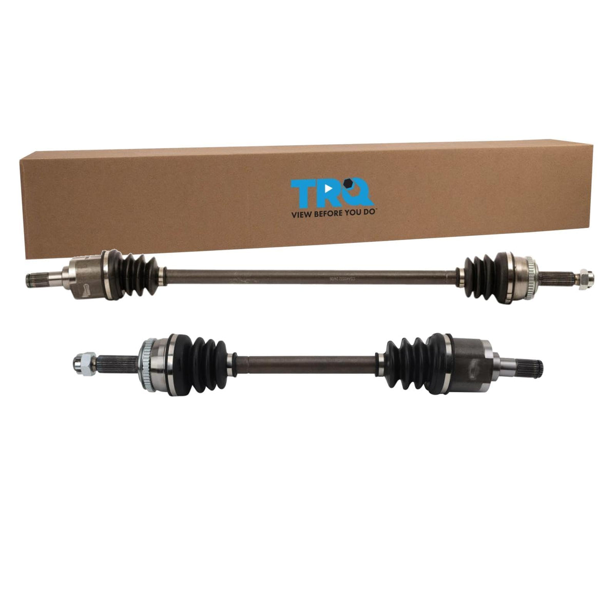 2 Piece CV Axle Assembly SetKit Includes(1) Front Driver Side CV Axle Assembly(1) Front Passenger Side CV Axle AssemblyFitmentCompatible with: 2006-11 Hyundai Accent Manual Transmission Front Driver & Passenger SideCompatible with: 2008-10 Kia Rio Manual Transmission without ABS Brakes Front Driver & Passenger SideCompatible with: 2006-07 Kia Rio Manual Transmission with Rear Drum Brakes Front Driver & Passenger SideCompatible with: 2011 Kia Rio Base Model Front Driver & Passenger SideCompatible with: 2008-11 Kia Rio5 Manual Transmission without ABS Brakes Front Driver & Passenger SideCompatible with: 2006-07 Kia Rio5 Manual Transmission with Rear Drum Brakes Front Driver & Passenger SideProduct AttributesQuantity: 2 PieceProduct Features 100% New: Manufactured to tighter tolerances for extended service life Neoprene Boots: Improved durability compared to stock material Moly Greased: Specifically-designed grease shield to reduce premature wear Application Specific Design: No modificationItem DetailsTRQ CV (constant velocity) drive axles are manufactured using premium raw materials designed to restore original performance. TRQ CV drive axles are new, so there is no core charge with your TRQ purchase. TRQ-designed drive axles utilize neoprene boots, moly grease, stainless steel clamps, and heat-treated ball tracks to ensure extended service life. Each TRQ axle is application-specific so each spline and thread will mate properly for a seamless fit. All products are fit and road-tested in our Massachusetts R&D facility to ensure we deliver on our promise of Trusted Reliable Quality.Reference NumbersCARDONE New: 66-3451, 66-3453Dodge: 495001E010, 495001E050GSP: NCV75538, NCV75539Hyundai: 495001E000, 495001E001, 495001E010, 495001E011, 495001E050, 495001E051Kia: 495001G000, 495001G001, 495001G050, 495001G051TrakMotive: HY-8106, HY-8110