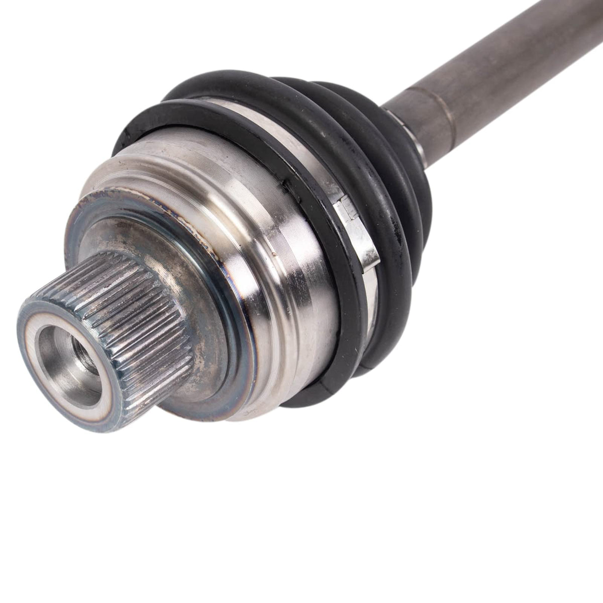 Q: What materials are used in the construction of the TRQ CV Axles?A: TRQ CV Axles are manufactured using premium raw materials, featuring neoprene boots for improved durability, moly grease for reduced wear, and stainless steel clamps for secure fittings.