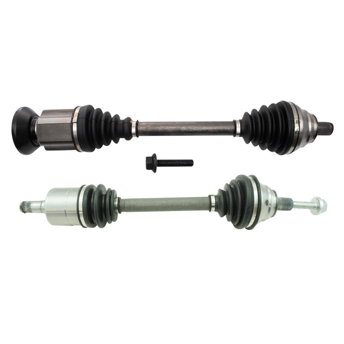 2 Piece CV Axle Assembly SetKit Includes(1) Front Driver Side CV Axle Assembly(1) Front Passenger Side CV Axle AssemblyFitmentCompatible with: 2009-17 VW Tiguan All Wheel Drive Front Driver & Passenger SideCompatible with: 2015-18 Audi Q3 Quattro Front Driver & Passenger SideCompatible with: 2017-18 VW Tiguan Limited All Wheel Drive Front Driver & Passenger SideProduct AttributesQuantity: 2 PieceProduct Features 100% New: Manufactured to tighter tolerances for extended service life Neoprene Boots: Improved durability compared to stock material Moly Greased: Specifically-designed grease shield to reduce premature wear Application Specific Design: No modificationItem DetailsTRQ CV (constant velocity) drive axles are manufactured using premium raw materials designed to restore original performance. TRQ CV drive axles are new, so there is no core charge with your TRQ purchase. TRQ-designed drive axles utilize neoprene boots, moly grease, stainless steel clamps, and heat-treated ball tracks to ensure extended service life. Each TRQ axle is application-specific so each spline and thread will mate properly for a seamless fit. All products are fit and road-tested in our Massachusetts R&D facility to ensure we deliver on our promise of Trusted Reliable Quality.Reference NumbersCARDONE New: 66-7343, 66-7460CARDONE: 667460GSP: NCV72008, NCV72109Hollander: 447-50222L, 447-50792LTrakMotive: VW-8143Volkswagen: 3C0407271AA, 5N0407761M, 5N0407764J