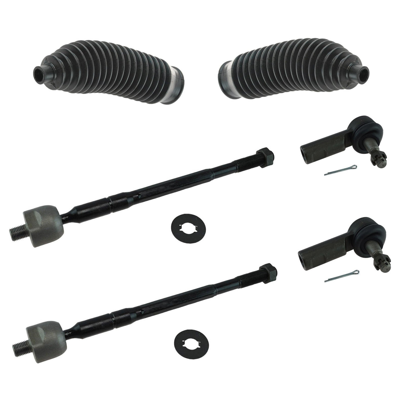 6 Piece Steering KitKit Includes(2) Front Inner Tie Rods(2) Front Outer Tie Rods(2) Front Steering Rack & Pinion BellowsFitmentCompatible with: 2005-15 Toyota Tacoma Base Model Rear Wheel Drive Front Driver & Passenger SideCompatible with: 2005-13 Toyota Tacoma X-Runner Rear Wheel Drive Front Driver & Passenger SideCompatible with: 2015 Toyota Tacoma TRD Pro Rear Wheel Drive Front Driver & Passenger SideProduct AttributesQuantity: 6 PieceProduct Features Application Specific Design: No modifications necessary Anti-Corrosion Coated: Enhanced surface life Pre-greased: No additional maintenance required Kitted for Restored Performance: Improved road-feel and handlingItem DetailsTRQ suspension kits are manufactured using premium raw materials and coatings for extended service life. Each TRQ suspension component is designed to be a direct, maintenance-free replacement to the stock unit. To extend the life of your steering and suspension components, TRQ recommends replacing components in pairs, sets, or kits. All products are fit and road-tested in our Massachusetts R&D facility to ensure we deliver on our promise of Trusted Reliable Quality.Reference NumbersBeck/Arnley: 103-3089DIY Solutions: SUS07212, SUS07922, SUS07923EMPI: 88-1640-KMevotech: MES80941, MS86706MOOG Chassis Products: ES80941, EV800234, K100181Toyota: 4504609330, 4550309480, 4553504010, 4553506020, 4553534010
