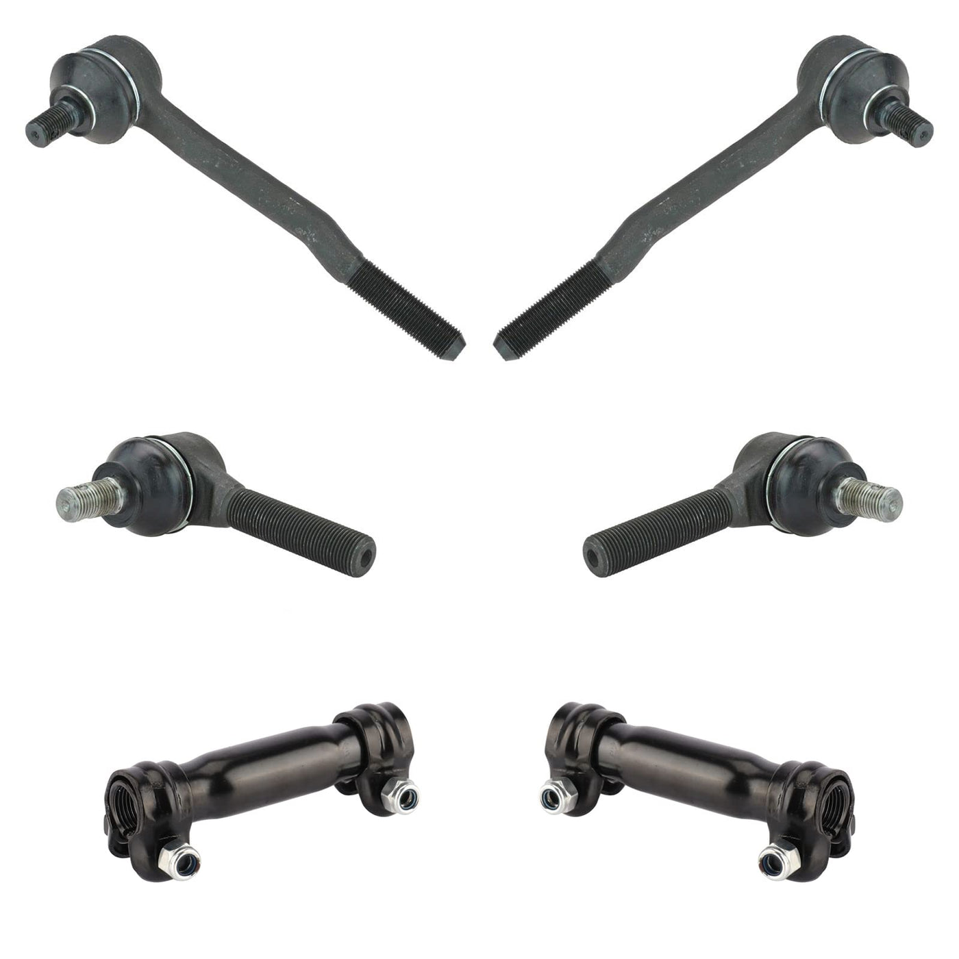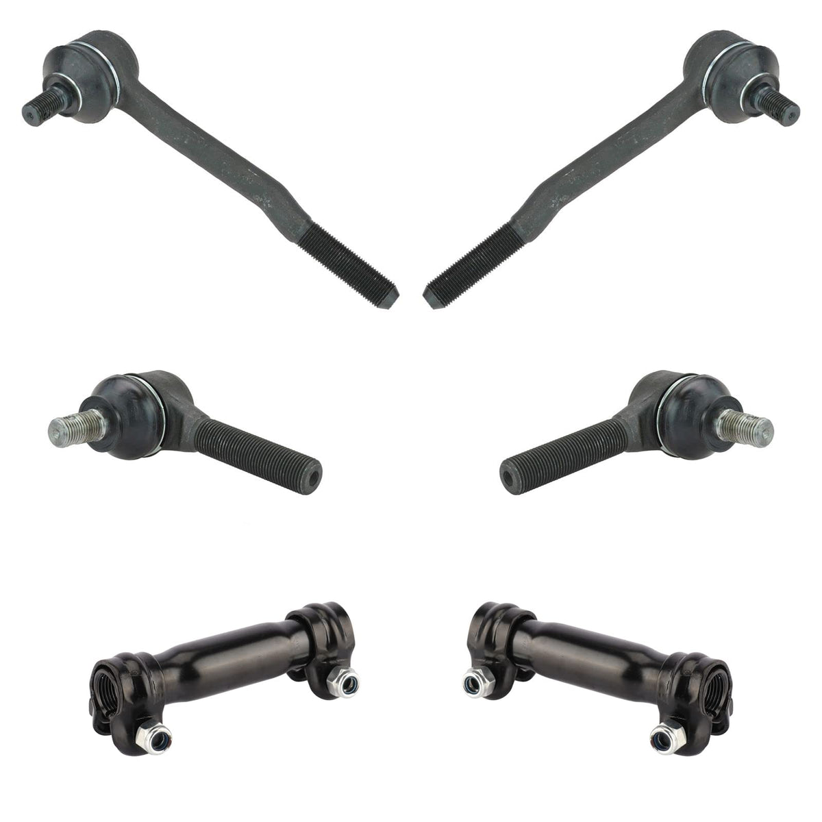 6 Piece Tie Rod SetKit Includes(2) Front Inner Tie Rods(2) Front Outer Tie Rods(2) Front Tie Rod Adjusting SleevesFitmentCompatible with: 1986-94 Toyota Pickup 4 Wheel Drive Front Driver & Passenger Side Inner & OuterCompatible with: 1986-95 Toyota 4Runner 4 Wheel Drive Front Driver & Passenger Side Inner & OuterCompatible with: 1993-98 Toyota T100 4 Wheel Drive Front Driver & Passenger Side Inner & OuterCompatible with: 1995 Toyota Pickup 4 Wheel Drive To 1/31/95 Production Date Front Driver & Passenger Side Inner & OuterProduct AttributesQuantity: 6 PieceIncludes: AdjustersReference NumbersDIY Solutions: SUS04873, SUS07483, SUS07484, SUS08068Mevotech: MES2369S, MES2376, MES3003RLMOOG Chassis Products: ES2369S, ES2376, ES3003RLToyota: 4504629115, 4504629125, 4504629235, 4504639105, 4504639106, 4504639125, 4504639165, 4504639175, 4504639215, 4504639235, 4504639355, 4504639385, 4540639135, 4540639165, 4540639175, 4540639185