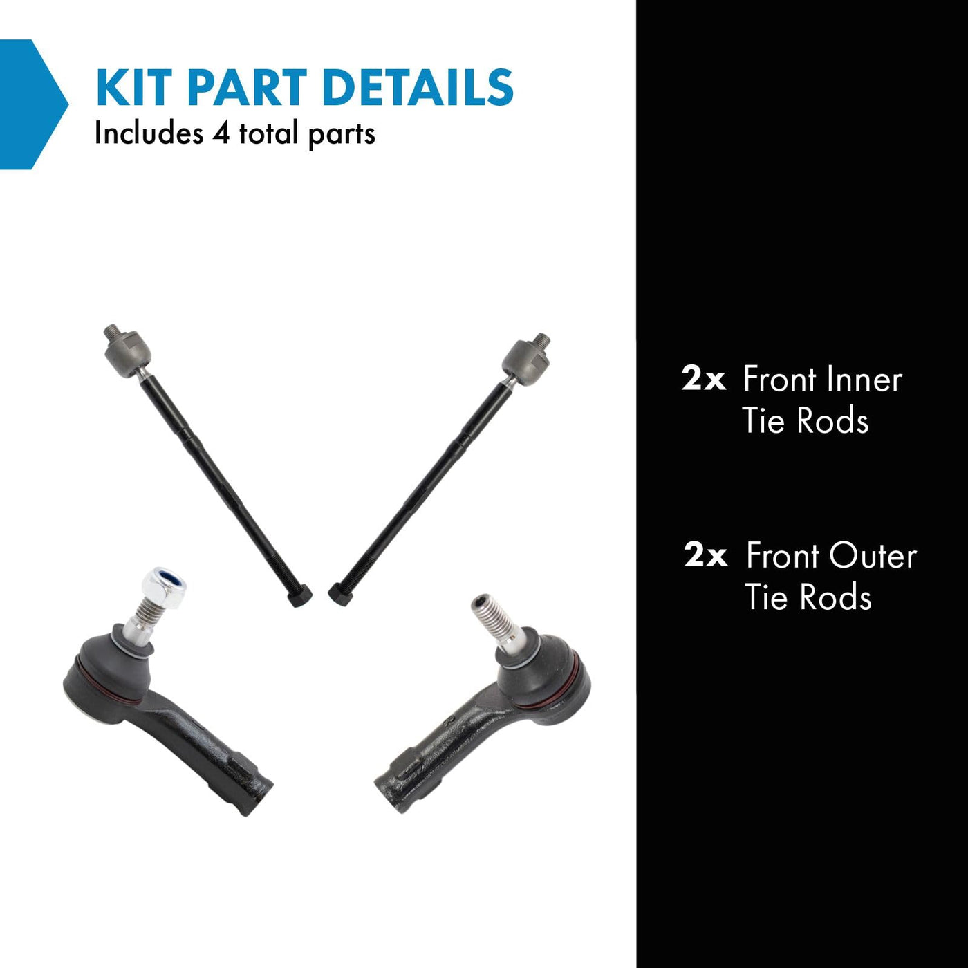 Trq Front Inner And Outer Tie Rod Set Compatible With 2011-2019 Ford Fiesta