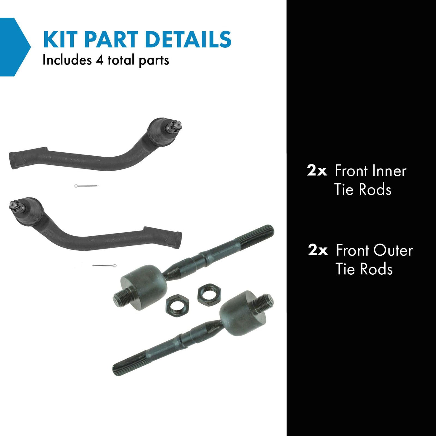 Trq Front Inner And Outer Tie Rod Set Compatible With 2012-2017 Hyundai Azera 2011-2013 Sonata 2014-2016 Kia Cadenza 2011-2015 O
