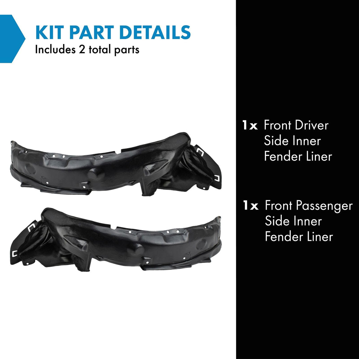 Trq Front Inner Fender Liner Set Compatible With 1992-1995 Honda Civic Ho1248102 Ho1249102