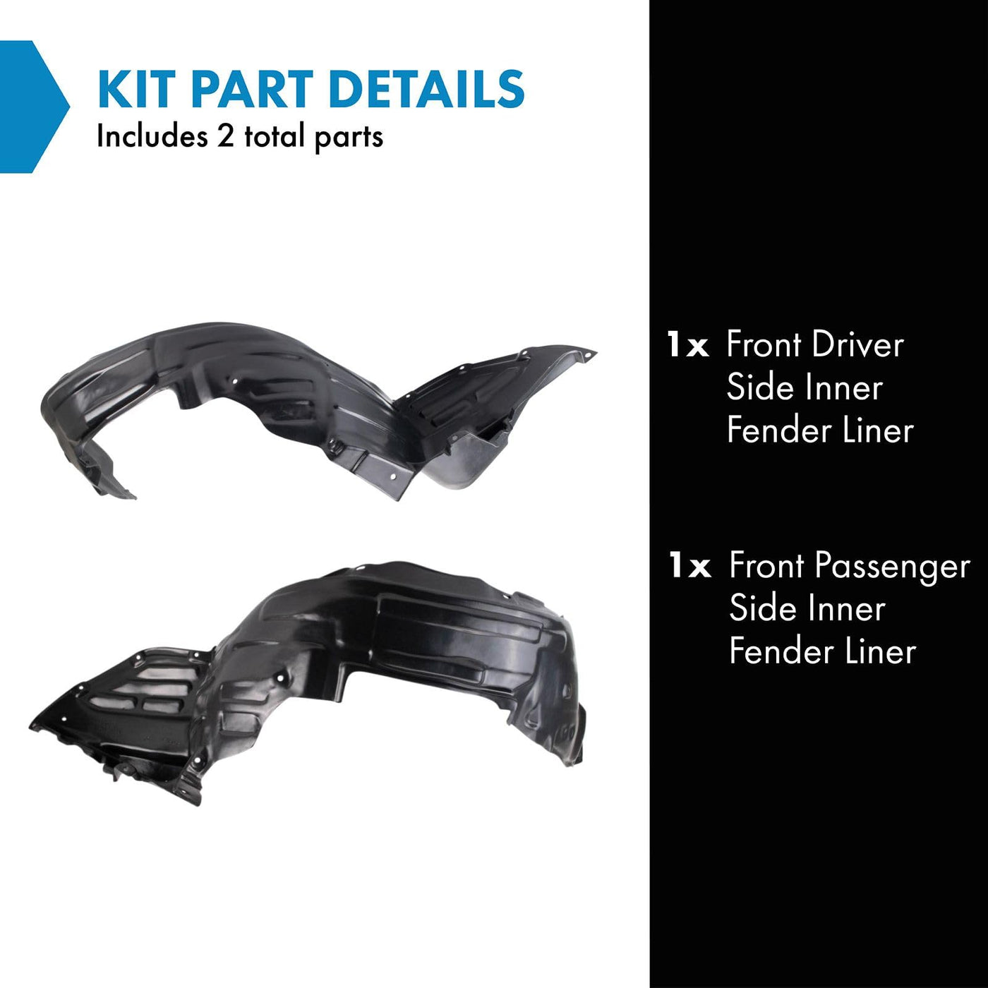 Trq Front Inner Fender Liner Set Compatible With 1995-2000 Lexus Ls400 Lx1250107 Lx1251107