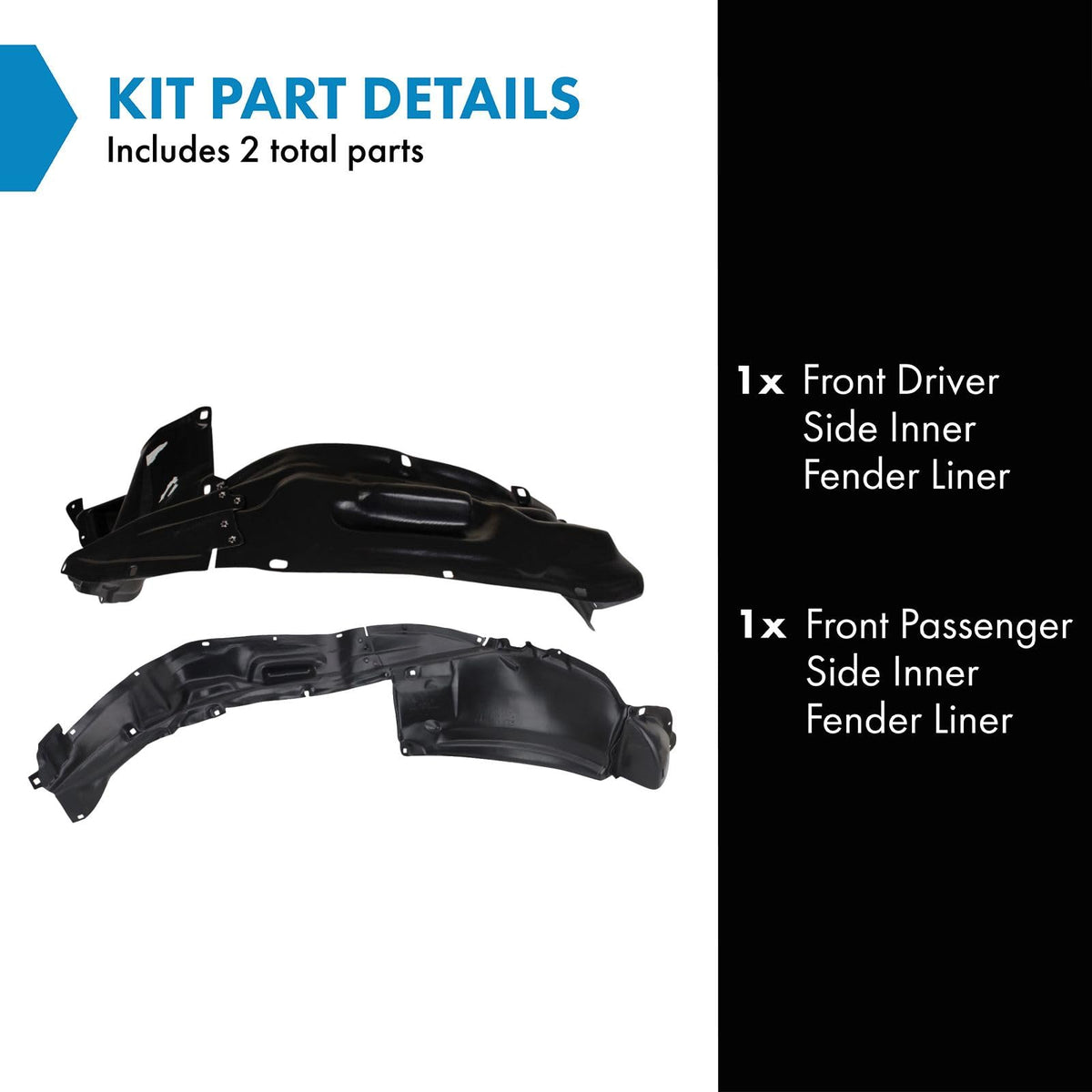 Trq Front Inner Fender Liner Set Compatible With 2007-2009 Toyota Fj Cruiser To1250123 To1251123