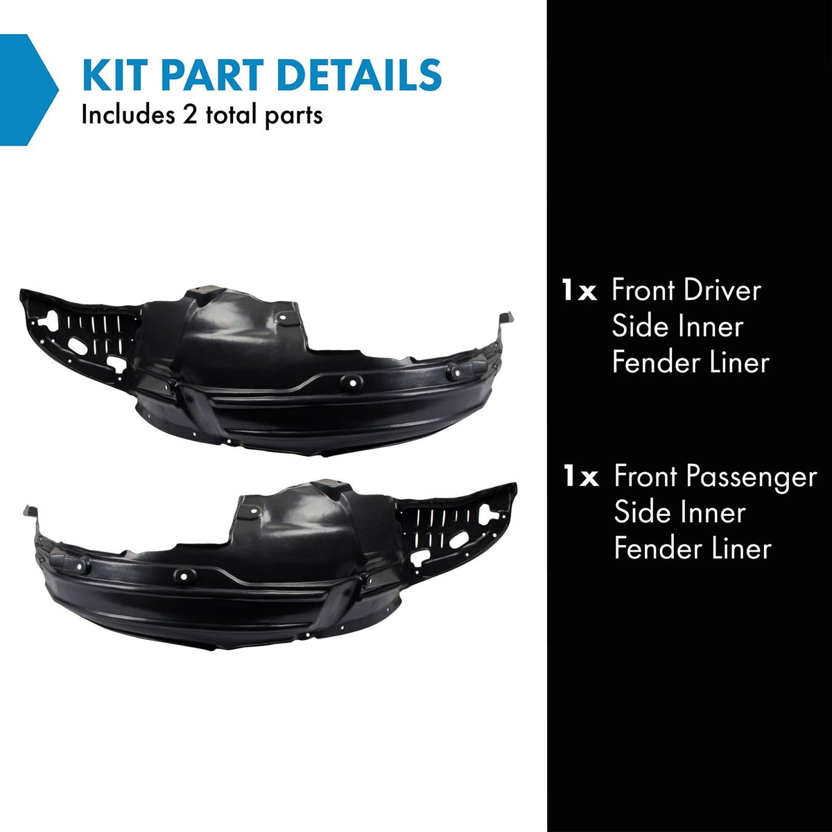 Trq Front Inner Fender Liner Set Compatible With 2009-2011 Acura Tl Ac1248125 Ac1249125