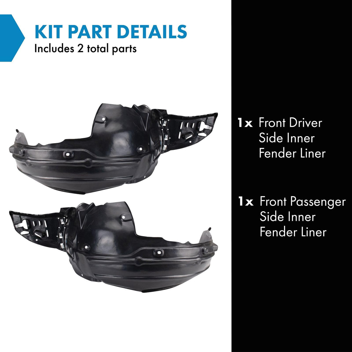Trq Front Inner Fender Liner Set Compatible With 2012-2014 Acura Tl Ac1248134 Ac1249134