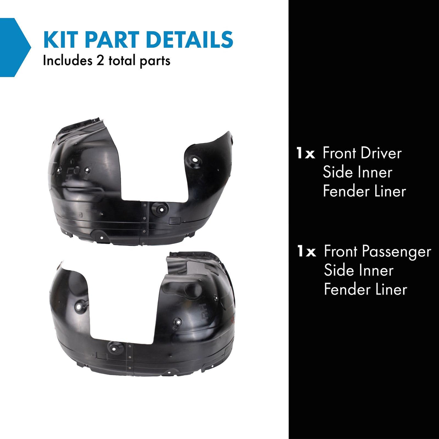 Trq Front Inner Fender Liner Set Compatible With 2016-2018 Kia Sorento Ki1248142 Ki1249142