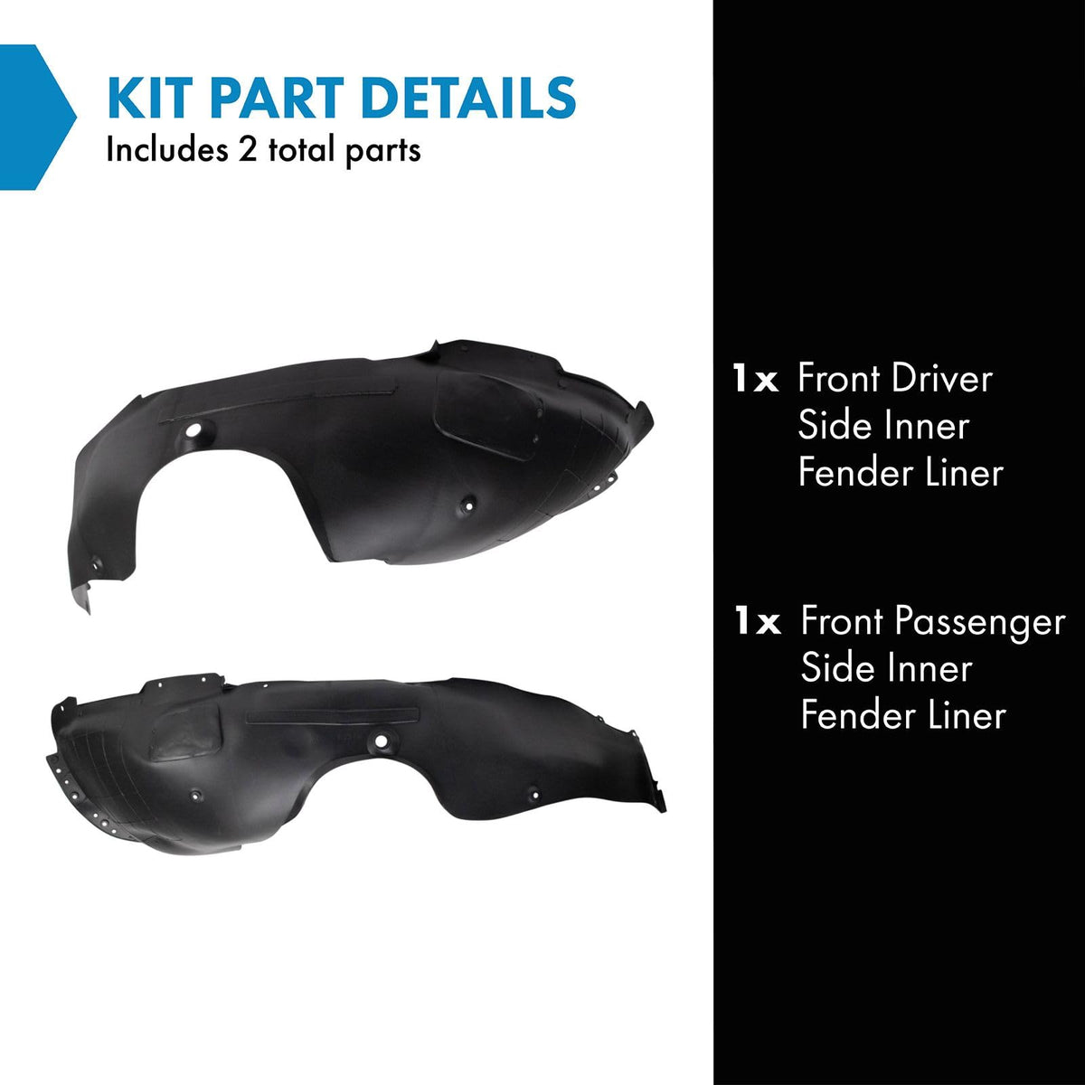 Trq Front Inner Fender Liner Set Compatible With 2018-2021 Hyundai Kona Hy1248176 Hy1249176