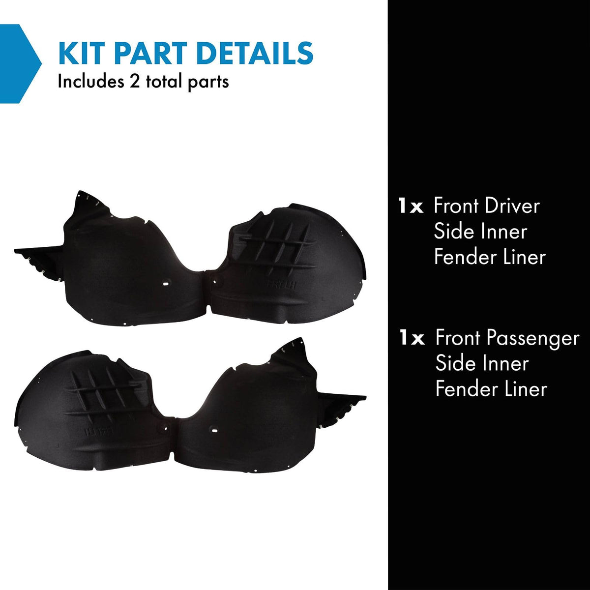 Trq Front Inner Fender Liner Set Compatible With 2018-2022 Buick Enclave Gm1248291 Gm1249291