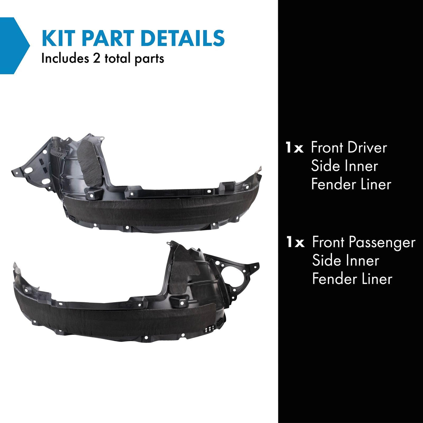 Trq Front Inner Fender Liner Set Compatible With 2020-2022 Honda Cr-V Ho1248199 Ho1249199