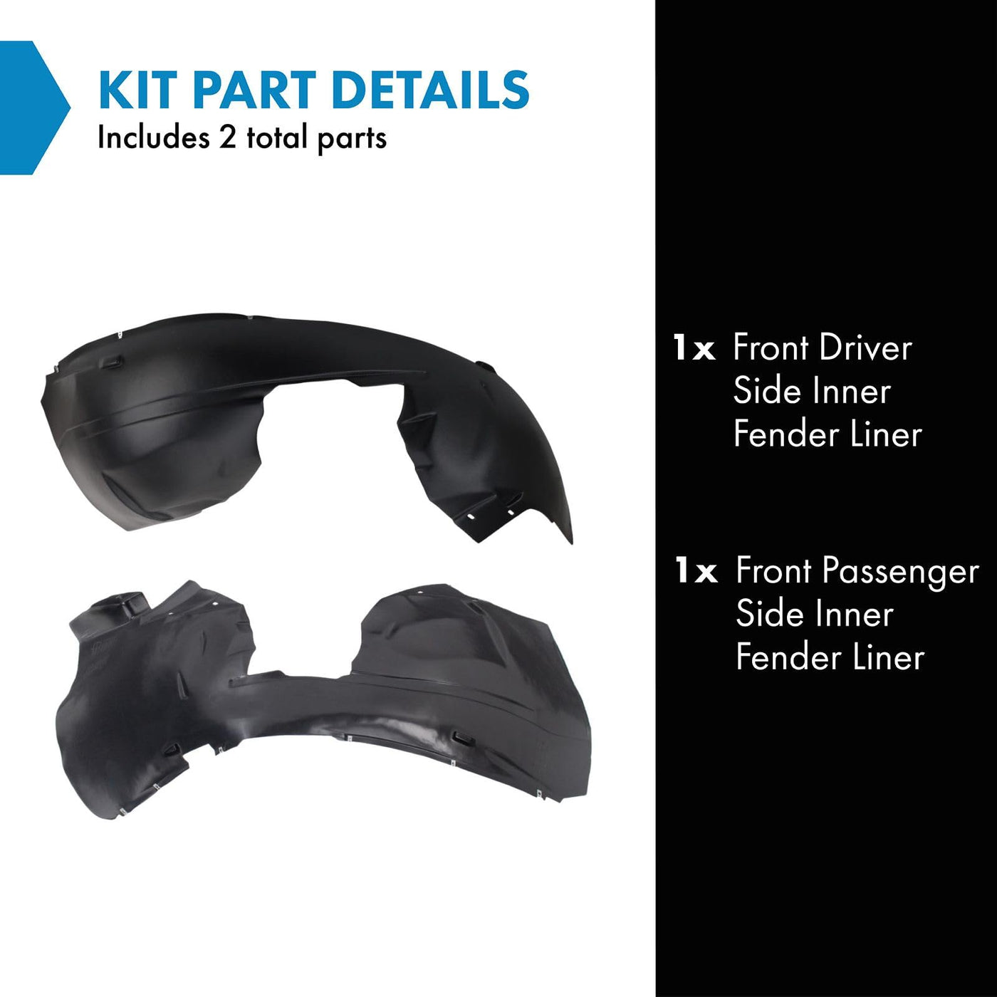 Trq Front Inner Fender Liner Set Driver & Passenger Side Compatible With 2008-2016 Chrysler Town & Country 2008-2020 Dodge Grand
