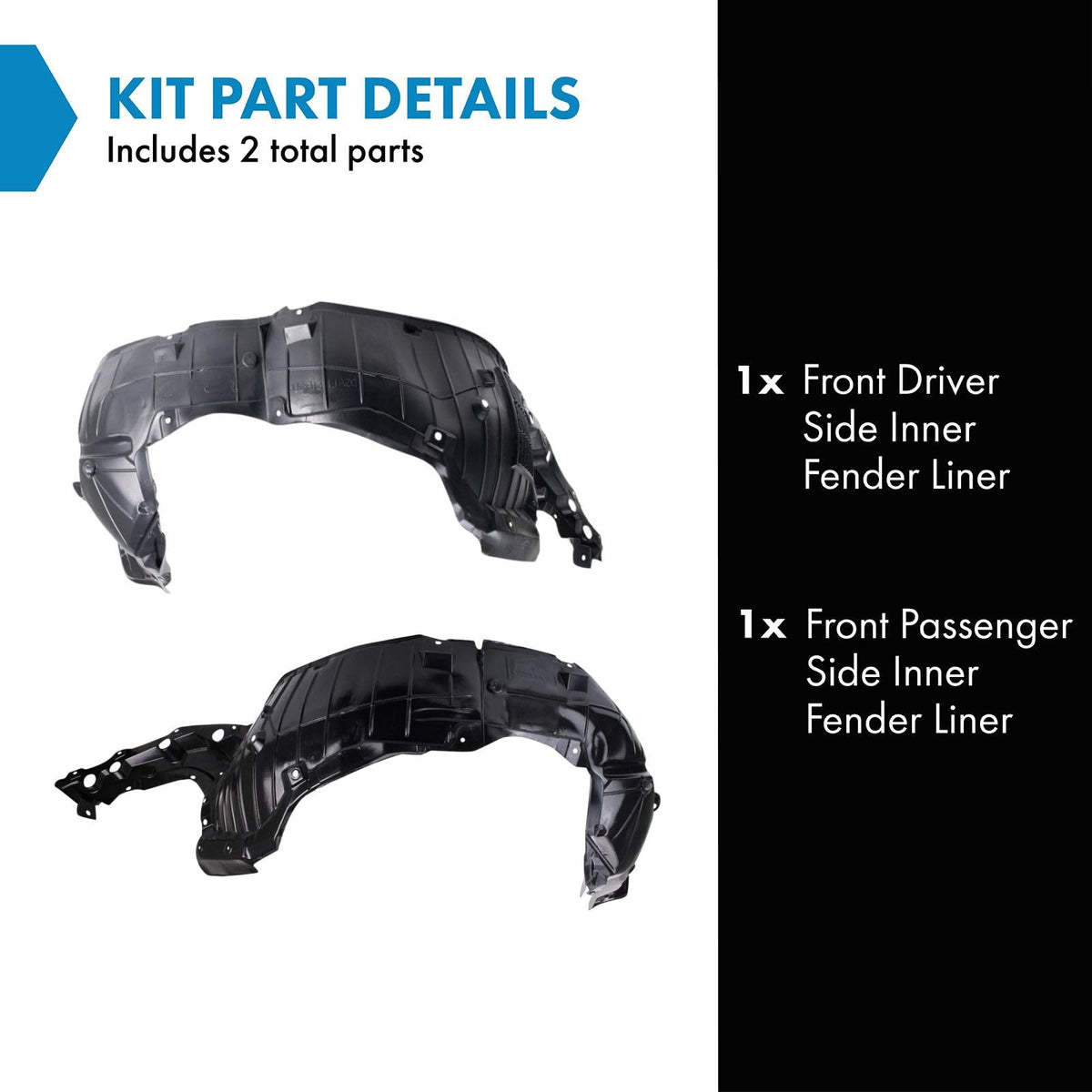 Trq Front Inner Fender Liner Set Driver & Passenger Side Ni1248150 Ni1249150 Compatible With 2016-2018 Nissan Altima