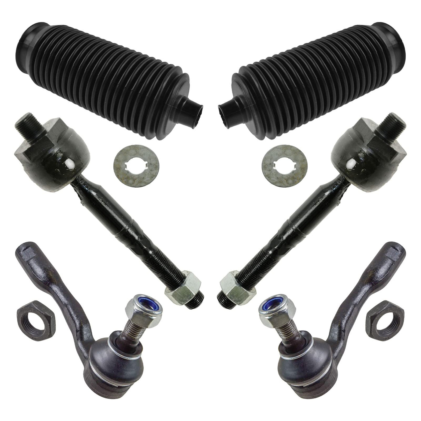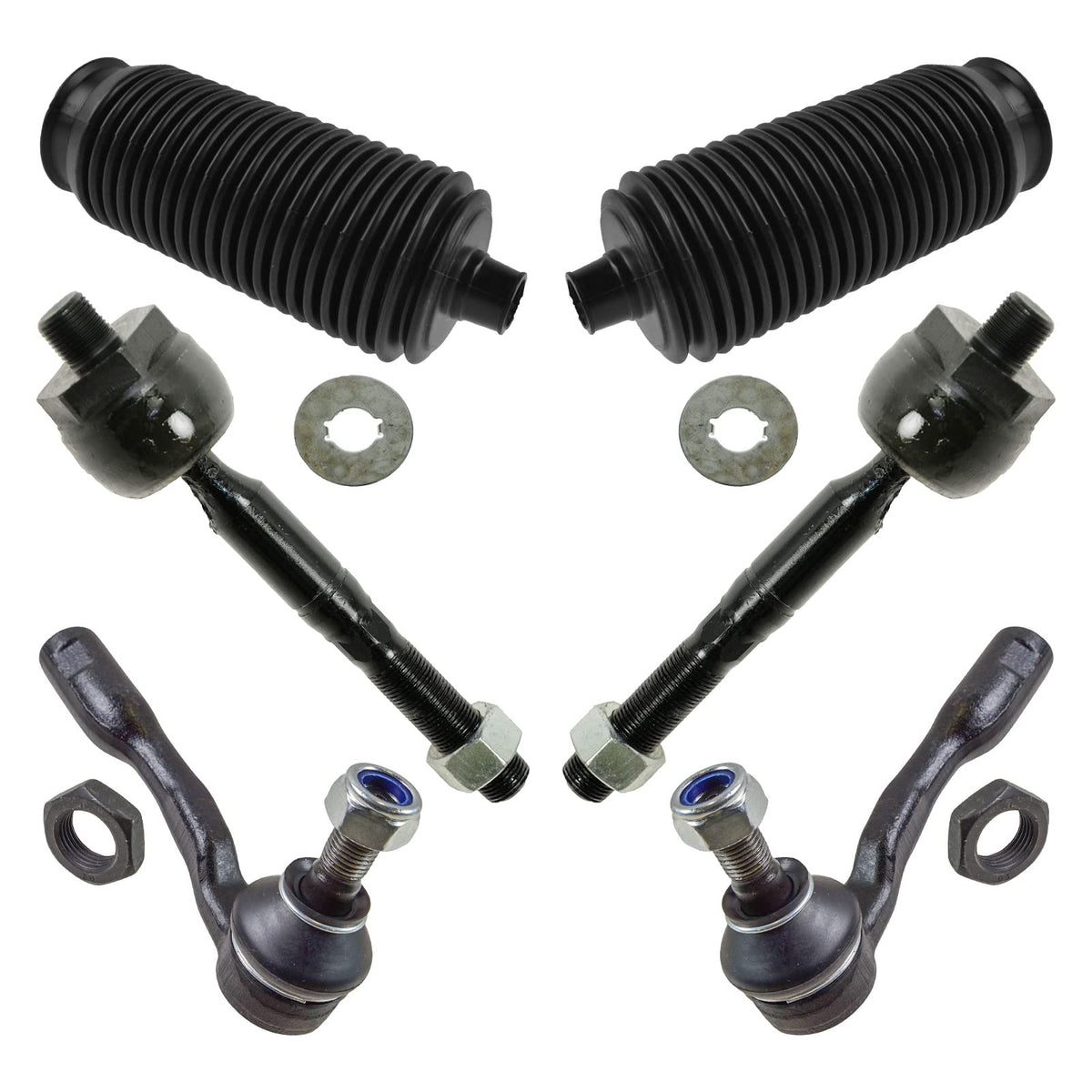 6 Piece Steering KitKit Includes(2) Front Inner Tie Rods(2) Front Outer Tie Rods(2) Front Steering Rack & Pinion BellowsFitmentCompatible with: 2000-02 Toyota Tundra Front Inner & OuterCompatible with: 2001-02 Toyota Sequoia Front Inner & OuterProduct AttributesQuantity: 6 PieceProduct Features Application Specific Design: No modifications necessary Anti-Corrosion Coated: Enhanced surface life Pre-greased: No additional maintenance required Kitted for Restored Performance: Improved road-feel and handlingItem DetailsTRQ suspension kits are manufactured using premium raw materials and coatings for extended service life. Each TRQ suspension component is designed to be a direct, maintenance-free replacement to the stock unit. To extend the life of your steering and suspension components, TRQ recommends replacing components in pairs, sets, or kits. All products are fit and road-tested in our Massachusetts R&D facility to ensure we deliver on our promise of Trusted Reliable Quality.Reference NumbersBeck/Arnley: 101-4841DIY Solutions: SUS07222, SUS07598, SUS07799, SUS07800EMPI: 88-1603-KMevotech: MES3564, MES3565, MS86702MOOG Chassis Products: ES3564, ES3565, EV800444, K90437Toyota: 4504639395, 4504639465, 4504739235, 4504739295, 4550309120, 4550309240, 455350C010
