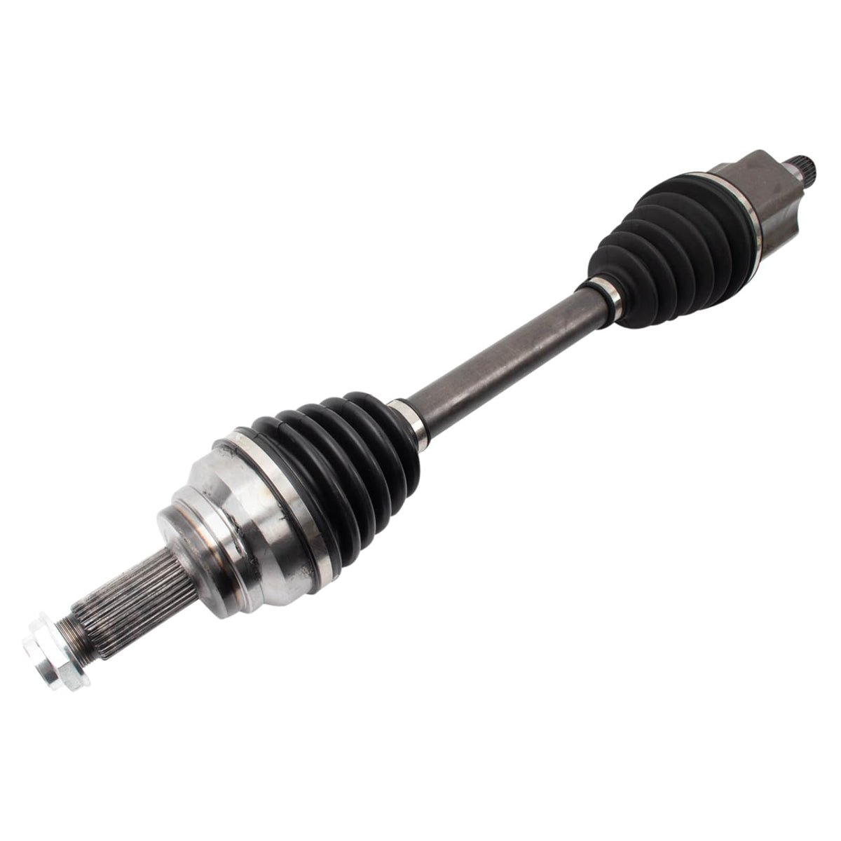 CV Axle AssemblyFitmentCompatible with: 2014-15 BMW X5 xDrive35i Front Driver SideCompatible with: 2014-15 BMW X5 xDrive35d Front Driver SideCompatible with: 2015 BMW X6 xDrive35i Front Driver SideProduct AttributesAxle Nut Length: 0.67 inShaft Diameter: 1.1 inAxle Nut Length: 16.5 mmBoot Rib Quantity: 2Compressed Length: 26.18 inInboard Spline Quantity: 27Shaft Diameter: 28 mmOutboard Spline Quantity: 30Compressed Length: 665 mmBoot Color: BlackInboard Joint Type: MaleBoot Material: NeopreneABS Tone Ring Included: NoGrade Type: RegularShaft Material: SteelAxle Nut Included: YesProduct Features 100% New: Manufactured to tighter tolerances for extended service life Neoprene Boots: Improved durability compared to stock material Moly Greased: Specifically-designed grease shield to reduce premature wear Application Specific Design: No modificationItem DetailsTRQ CV (constant velocity) drive axles are manufactured using premium raw materials designed to restore original performance. TRQ CV drive axles are new, so there is no core charge with your TRQ purchase. TRQ-designed drive axles utilize neoprene boots, moly grease, stainless steel clamps, and heat-treated ball tracks to ensure extended service life. Each TRQ axle is application-specific so each spline and thread will mate properly for a seamless fit. All products are fit and road-tested in our Massachusetts R&D facility to ensure we deliver on our promise of Trusted Reliable Quality.Reference NumbersCARDONE New: 66-9766GSP: NCV27058TrakMotive: BM-8115