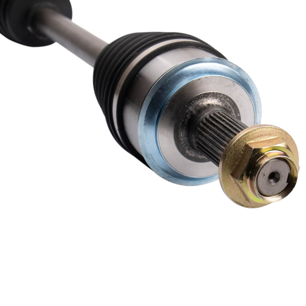 CV Axle AssemblyFitmentCompatible with: 2015-17 Honda Accord L4 2.4L Automatic CVT Transmission Front Driver SideProduct AttributesAxle Nut Socket Size: 1.42 inCompressed Length: 26.61 inInboard Spline Quantity: 27Outboard Spline Quantity: 30Axle Nut Socket Size: 36 mmCompressed Length: 676 mmAxle Nut Thread Size: M26x1.5Outboard Joint Type: MaleInboard Joint Type: MaleABS Tone Ring Included: NoBoot Material: RubberGrade Type: Standard ReplacementAxle Nut Included: YesProduct Features 100% New: Manufactured to tighter tolerances for extended service life Neoprene Boots: Improved durability compared to stock material Moly Greased: Specifically-designed grease shield to reduce premature wear Application Specific Design: No modificationItem DetailsTRQ CV (constant velocity) drive axles are manufactured using premium raw materials designed to restore original performance. TRQ CV drive axles are new, so there is no core charge with your TRQ purchase. TRQ-designed drive axles utilize neoprene boots, moly grease, stainless steel clamps, and heat-treated ball tracks to ensure extended service life. Each TRQ axle is application-specific so each spline and thread will mate properly for a seamless fit. All products are fit and road-tested in our Massachusetts R&D facility to ensure we deliver on our promise of Trusted Reliable Quality.Reference NumbersCARDONE New: 66-4342CARDONE: 664342GSP: NCV36121Hollander: 447-62272LHonda: 44306T2AA21TrakMotive: HO-8515