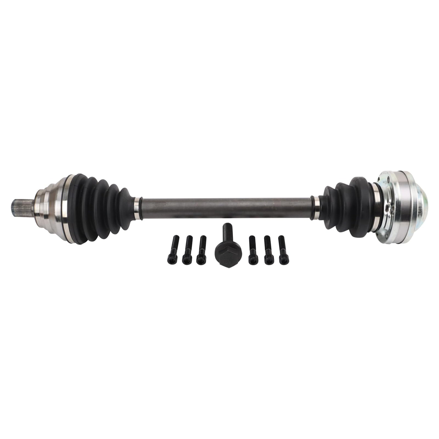 CV Axle AssemblyFitmentCompatible with: 2010-13 VW Jetta TDI Manual Transmission Front Driver SideCompatible with: 2012-13 VW Jetta TDI Premium Manual Transmission Front Driver SideCompatible with: 2006-08 VW Jetta GLI Front Driver SideCompatible with: 2014 VW Jetta L4 1.4L Dual Clutch Automatic Transmission Front Driver SideCompatible with: 2014 VW Jetta L4 2.0L Automatic Transmission Front Driver SideCompatible with: 2016 VW Jetta Hybrid SEL Premium Front Driver SideCompatible with: 2016 VW Jetta S Front Driver SideCompatible with: 2016 VW Jetta SE Front Driver SideCompatible with: 2006-07 VW Jetta 2.0T Front Driver SideCompatible with: 2015 VW Jetta TDI S Manual Transmission Front Driver SideCompatible with: 2015 VW Jetta Hybrid SEL Premium Dual Clutch Automatic Transmission Front Driver SideCompatible with: 2015 VW Jetta TDI SEL Manual Transmission Front Driver SideCompatible with: 2015 VW Jetta TDI SE Manual Transmission Front Driver SideCompatible with: 2006-13 VW GTI Front Driver SideCompatible with: 2010 VW Jetta TDI Cup Edition Manual Transmission Front Driver SideCompatible with: 2010 VW Jetta Wolfsburg Edition Manual Transmission Front Driver SideCompatible with: 2010 VW Jetta Wolfsburg Edition Dual Clutch Automatic Transmission Front Driver SideCompatible with: 2009 VW Jetta Wolfsburg Edition L4 2.0L Front Driver SideCompatible with: 2009 VW Jetta SEL L4 2.0L Front Driver SideCompatible with: 2009 VW Jetta GLI L4 2.0L Front Driver SideCompatible with: 2006-08 VW Passat Manual Transmission Front Driver SideCompatible with: 2015-19 Audi A3 Quattro Front Driver SideCompatible with: 2008 VW Jetta Wolfsburg Edition Front Driver SideCompatible with: 2010-13 VW Golf TDI Manual Transmission Front Driver SideCompatible with: 2009-15 VW Eos Front Driver SideCompatible with: 2015-16 Audi A3 Premium Plus Front Driver SideCompatible with: 2015-16 Audi A3 Prestige Front Driver SideCompatible with: 2015-16 Audi A3 Premium Front Driver SideCompatible with: 2013 VW CC L4 2.0L Manual Transmission Front Driver SideCompatible with: 2013 VW CC L4 2.0L Automatic Transmission Front Driver SideCompatible with: 2012 VW CC Manual Transmission Front Driver SideCompatible with: 2010 VW CC Manual Transmission To 1/31/10 Production Date Front Driver SideCompatible with: 2014-16 VW CC Manual Transmission Front Driver SideCompatible with: 2015-18 Audi S3 Front Driver SideCompatible with: 2006-09 Audi A3 Front Driver SideCompatible with: 2010-13 Audi A3 Base Model Front Driver SideCompatible with: 2009 VW CC Manual Transmission Front Driver SideCompatible with: 2008 VW Eos Lux Front Driver SideCompatible with: 2008 VW Eos Komfort Front Driver SideCompatible with: 2008 VW Eos Turbo Front Driver SideCompatible with: 2010 VW Passat Front Driver SideCompatible with: 2007 VW Eos Base Model Front Driver SideCompatible with: 2007 VW Eos 2.0T Front Driver SideCompatible with: 2017 Audi A3 Front Driver SideCompatible with: 2012-13 VW Golf R Front Driver SideCompatible with: 2014 VW GTI Dual Clutch Automatic Transmission Front Driver SideCompatible with: 2008 VW R32 Front Driver SideCompatible with: 2010-13 Audi A3 Quattro Front Driver SideCompatible with: 2017 VW CC Front Driver SideCompatible with: 2009 Audi A3 Quattro L4 2.0L Front Driver SideCompatible with: 2007 Audi A3 Quattro From Chassis 8F-7-084-000 Front Driver SideCompatible with: 2008 Audi A3 Quattro Front Driver SideProduct AttributesShaft Diameter: 1.22 inBoot Rib Quantity: 2Compressed Length: 23.66 inAxle Nut Length: 3.82 inShaft Diameter: 30.8 mmOutboard Spline Quantity: 36Compressed Length: 601 mmAxle Nut Length: 97 mmBoot Color: BlackAxle Nut Thread Size: M16x1.5ABS Tone Ring Included: NoDynamic Damper Attached: NoInboard Joint Type: PancakeGrade Type: RegularBoot Material: RubberShaft Material: SteelAxle Nut Included: YesProduct Features 100% New: Manufactured to tighter tolerances for extended service life Neoprene Boots: Improved durability compared to stock material Moly Greased: Specifically-designed grease shield to reduce premature wear Application Specific Design: No modificationItem DetailsTRQ CV (constant velocity) drive axles are manufactured using premium raw materials designed to restore original performance. TRQ CV drive axles are new, so there is no core charge with your TRQ purchase. TRQ-designed drive axles utilize neoprene boots, moly grease, stainless steel clamps, and heat-treated ball tracks to ensure extended service life. Each TRQ axle is application-specific so each spline and thread will mate properly for a seamless fit. All products are fit and road-tested in our Massachusetts R&D facility to ensure we deliver on our promise of Trusted Reliable Quality.Reference NumbersAudi: 1K0407272CRCARDONE New: 66-7598GSP: NCV23049KTrakMotive: AD-8148