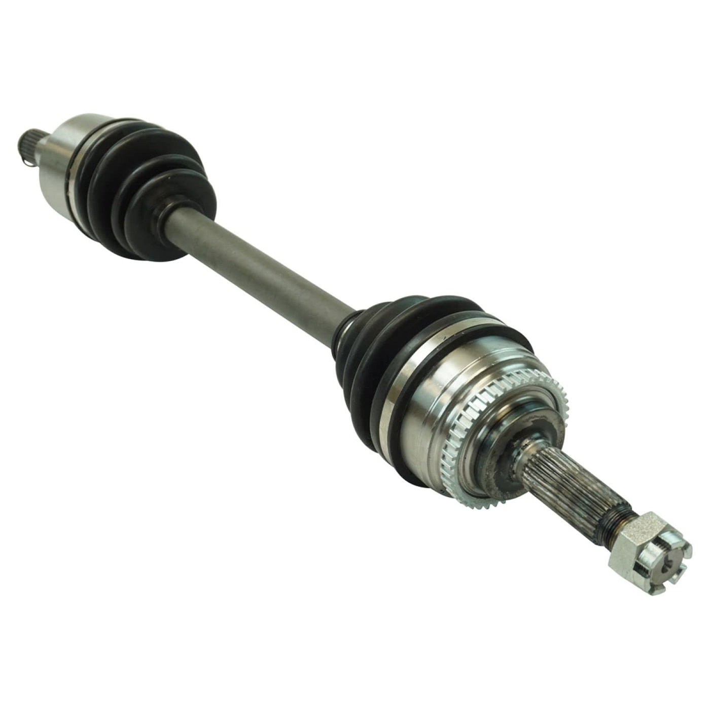 CV Axle AssemblyFitmentCompatible with: 2001-05 Chrysler Sebring Coupe V6 3.0L Front Driver SideCompatible with: 2000-05 Mitsubishi Eclipse V6 3.0L Front Driver SideCompatible with: 2001-05 Dodge Stratus Coupe V6 3.0L Front Driver SideCompatible with: 1999-03 Mitsubishi Galant V6 3.0L Front Driver SideProduct AttributesAxle Nut Socket Size: 1.26 inOutboard Spline Quantity: 25Compressed Length: 25 inInboard Spline Quantity: 27Axle Nut Socket Size: 32 mmABS Tone Ring Tooth Quantity: 43Compressed Length: 635 mmAxle Nut Thread Size: M22x1.5Inboard Joint Type: MaleOutboard Joint Type: MaleBoot Material: RubberGrade Type: Standard ReplacementABS Tone Ring Included: YesAxle Nut Included: YesProduct Features 100% New: Manufactured to tighter tolerances for extended service life Neoprene Boots: Improved durability compared to stock material Moly Greased: Specifically-designed grease shield to reduce premature wear Application Specific Design: No modificationItem DetailsTRQ CV (constant velocity) drive axles are manufactured using premium raw materials designed to restore original performance. TRQ CV drive axles are new, so there is no core charge with your TRQ purchase. TRQ-designed drive axles utilize neoprene boots, moly grease, stainless steel clamps, and heat-treated ball tracks to ensure extended service life. Each TRQ axle is application-specific so each spline and thread will mate properly for a seamless fit. All products are fit and road-tested in our Massachusetts R&D facility to ensure we deliver on our promise of Trusted Reliable Quality.Reference NumbersCARDONE New: 66-3338CARDONE: 663338Chrysler: MR357813, MR357815Dodge: MR357813, MR357815GSP: NCV51529Mitsubishi: MR357813, MR357815