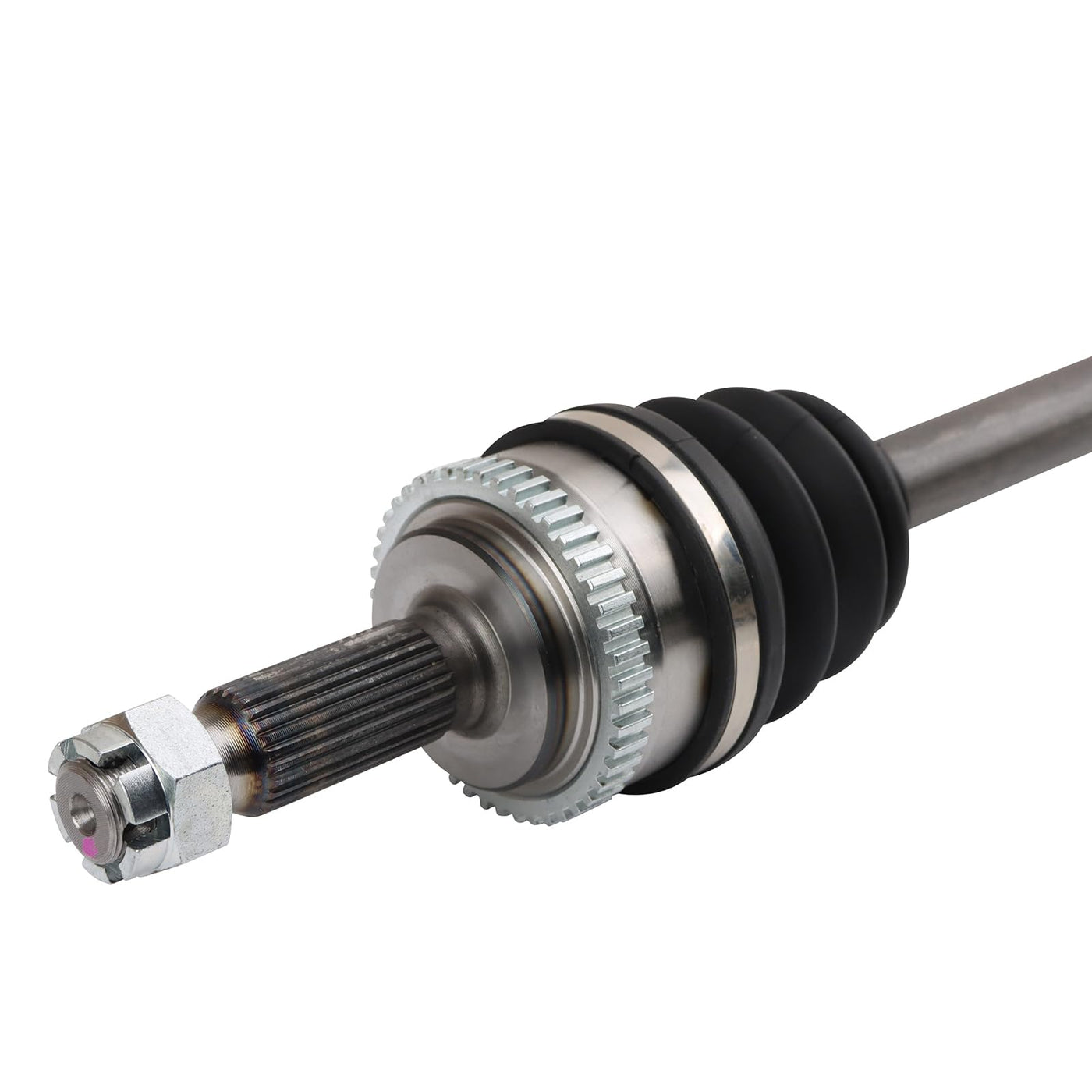 CV Axle AssemblyFitmentCompatible with: 2010-11 Kia Soul Base Model Front Driver SideCompatible with: 2013-17 Hyundai Veloster Base Model Manual Transmission Front Driver SideCompatible with: 2012 Hyundai Veloster Manual Transmission Front Driver SideProduct AttributesAxle Nut Length: 0.87 inShaft Diameter: 0.98 inBoot Rib Quantity: 2Axle Nut Length: 21.5 mmInboard Spline Quantity: 25Shaft Diameter: 25 mmCompressed Length: 26.85 inOutboard Spline Quantity: 27ABS Tone Ring Tooth Quantity: 46Compressed Length: 682 mmBoot Color: BlackAxle Nut Thread Size: M22x1.5Inboard Joint Type: MaleDynamic Damper Attached: NoGrade Type: RegularBoot Material: RubberShaft Material: SteelABS Tone Ring Included: YesAxle Nut Included: YesProduct Features 100% New: Manufactured to tighter tolerances for extended service life Neoprene Boots: Improved durability compared to stock material Moly Greased: Specifically-designed grease shield to reduce premature wear Application Specific Design: No modificationItem DetailsTRQ CV (constant velocity) drive axles are manufactured using premium raw materials designed to restore original performance. TRQ CV drive axles are new, so there is no core charge with your TRQ purchase. TRQ-designed drive axles utilize neoprene boots, moly grease, stainless steel clamps, and heat-treated ball tracks to ensure extended service life. Each TRQ axle is application-specific so each spline and thread will mate properly for a seamless fit. All products are fit and road-tested in our Massachusetts R&D facility to ensure we deliver on our promise of Trusted Reliable Quality.Reference NumbersGSP: NCV37024OEM Part Number: 495002V000, 495012K000TrakMotive: HY8253