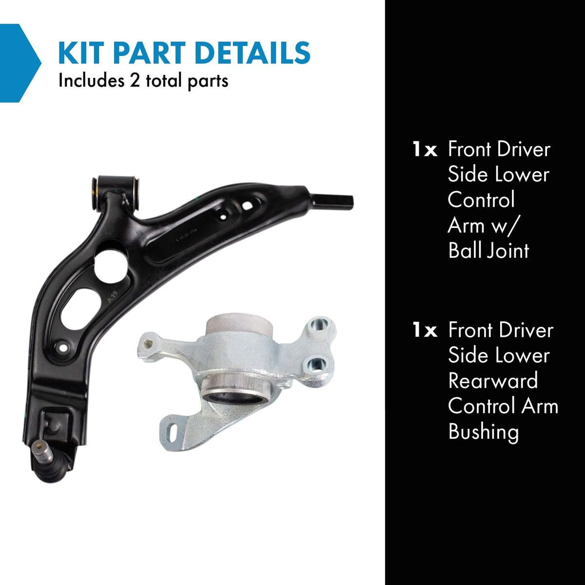 Control Arm with Ball JointKit Includes(1) Front Driver Side Lower Control Arm with Ball Joint(1) Front Driver Side Lower Rearward Control Arm BushingFitmentCompatible with: 2016-18 BMW X1 Front Driver Side LowerCompatible with: 2017-19 Mini Cooper Countryman Front Driver Side LowerCompatible with: 2018-20 BMW X2 Front Driver Side LowerCompatible with: 2016-19 Mini Cooper Clubman Front Driver Side LowerCompatible with: 2020-21 BMW 228i xDrive Gran Coupe Front Driver Side LowerProduct AttributesGreaseable: NoAdjustable: NoControl Arm Material: SteelBall Joint Mounting Type: WeldedBushings Included: YesPackage Contents: Components Individually PackagedReference NumbersArnott Industries: CB-4796Beck/Arnley: 102-8102BMW: 31122785113, 31126871301, 31126879841, 31126879843, 31126882843, 31128831645Delphi: TC3856, TD1827WDorman - OE Solutions: 527-135Hollander: 512-59612LMevotech Supreme: CMS101546Mevotech: CMS101546Mini: 31126871301, 31126879841, 31126882843Suspensia: X05BU0074, X05CJ6462