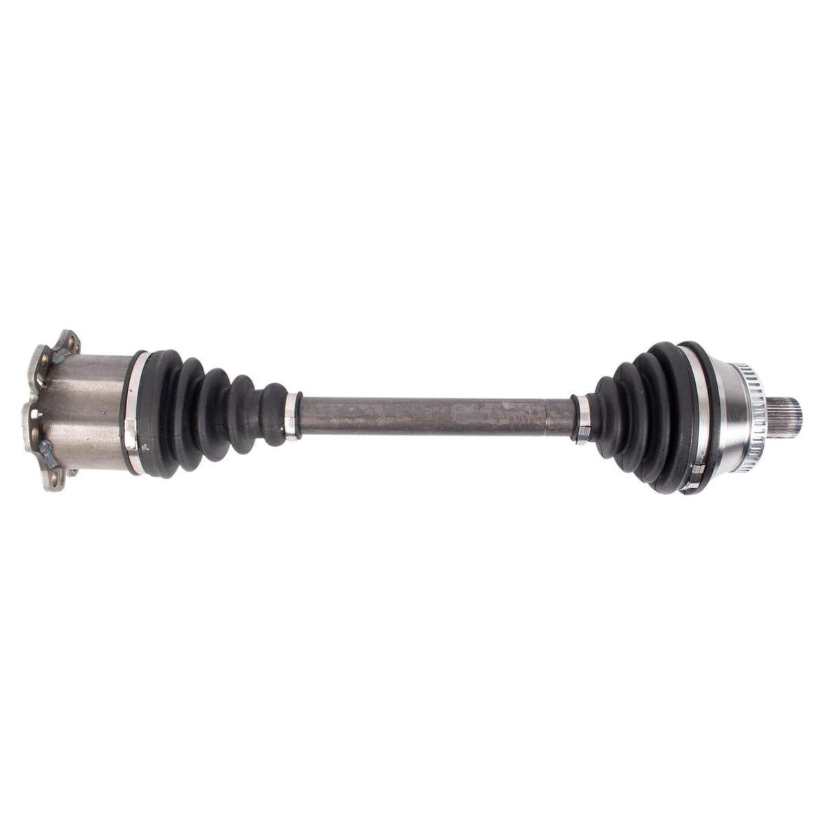 CV Axle AssemblyFitmentCompatible with: 2005-08 Audi A4 Automatic CVT Transmission Front Driver SideCompatible with: 2005-08 Audi A4 Automatic CVT Transmission Front Passenger SideCompatible with: 2002-04 Audi A4 V6 3.0L Automatic CVT Transmission Front Passenger SideCompatible with: 2002-04 Audi A4 V6 3.0L Automatic CVT Transmission Front Driver SideCompatible with: 2009 Audi A4 Base Model Front Passenger SideCompatible with: 2009 Audi A4 Base Model Front Driver SideProduct AttributesInboard Spline Quantity: 0Compressed Length: 20.63 inOutboard Spline Quantity: 38ABS Tone Ring Tooth Quantity: 45Compressed Length: 524 mmInboard Joint Type: FlangeOutboard Joint Type: MaleAxle Nut Included: NoBoot Material: RubberGrade Type: Standard ReplacementABS Tone Ring Included: YesProduct Features 100% New: Manufactured to tighter tolerances for extended service life Neoprene Boots: Improved durability compared to stock material Moly Greased: Specifically-designed grease shield to reduce premature wear Application Specific Design: No modificationItem DetailsTRQ CV (constant velocity) drive axles are manufactured using premium raw materials designed to restore original performance. TRQ CV drive axles are new, so there is no core charge with your TRQ purchase. TRQ-designed drive axles utilize neoprene boots, moly grease, stainless steel clamps, and heat-treated ball tracks to ensure extended service life. Each TRQ axle is application-specific so each spline and thread will mate properly for a seamless fit. All products are fit and road-tested in our Massachusetts R&D facility to ensure we deliver on our promise of Trusted Reliable Quality.Reference NumbersAPW: AD8322ACARDONE New: 66-7350CARDONE: 667350Drive Tech America: VW7176AGSP: NCV23600OEM Part Number: 8E0407451HXOMNIPARTS: 17016042TrakMotive: AD-8096, AD8096Volkswagen: 8E0407271BE