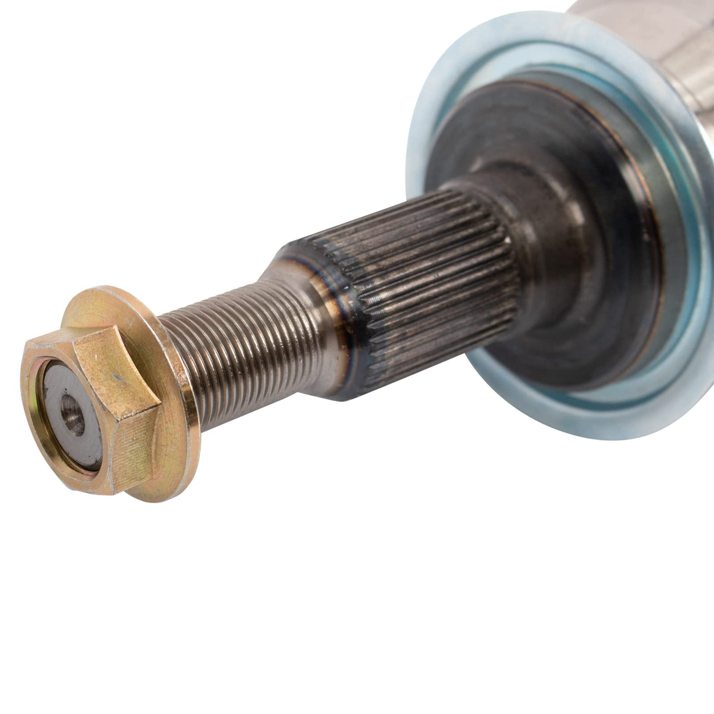 Q: What benefits does the TRQ CV Axle Assembly offer over stock components?A: The TRQ CV Axle Assembly offers several benefits over stock components, including tighter manufacturing tolerances for extended service life, application-specific design for a proper fit, and enhanced durability with neoprene boots and moly grease.