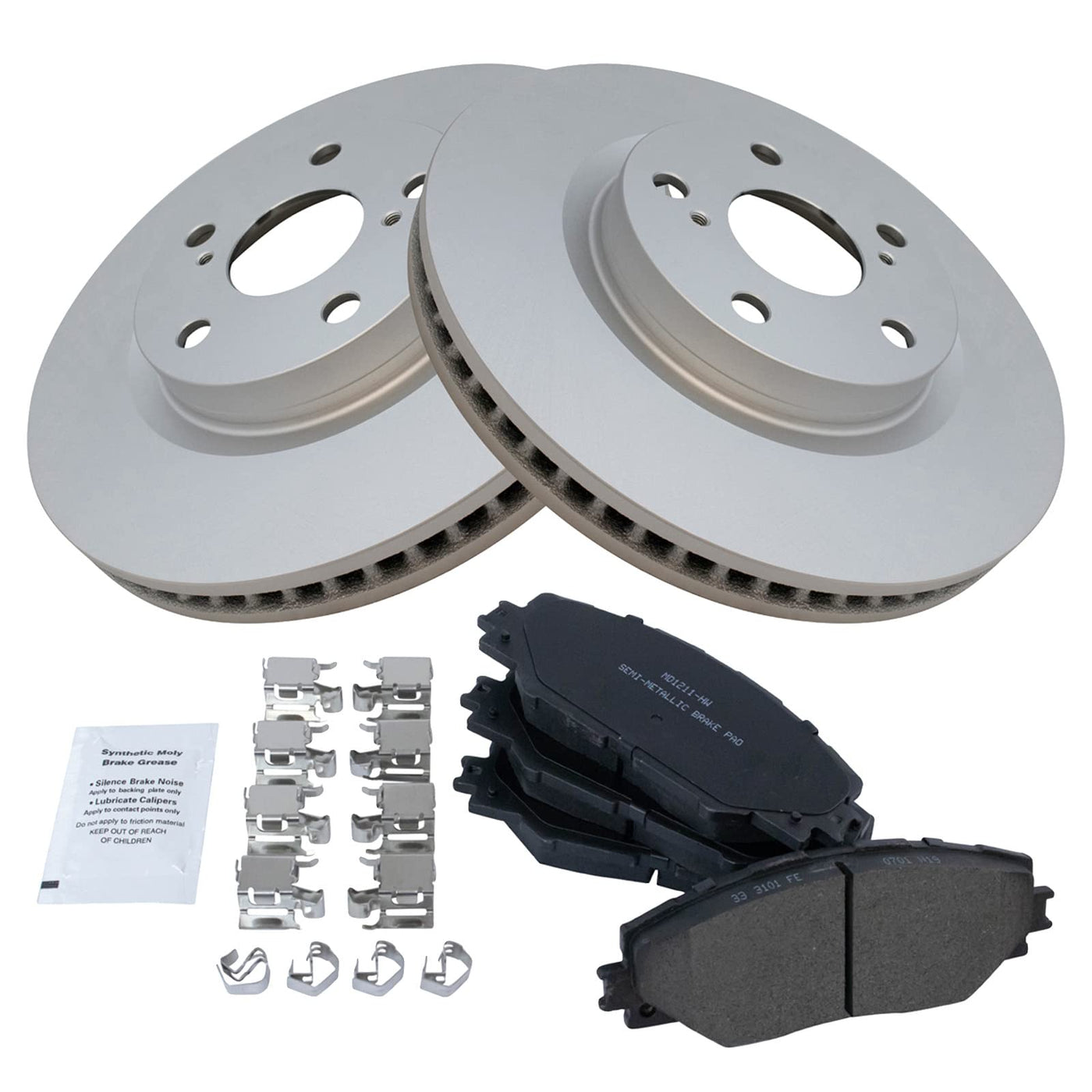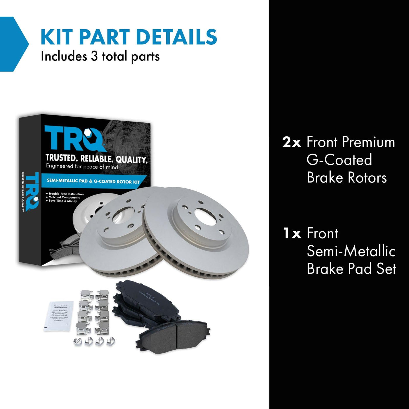 Trq Front Semi-Metallic Brake Pad Set & Coated Rotor Pair Set Compatible With Tc Matrix Rav4