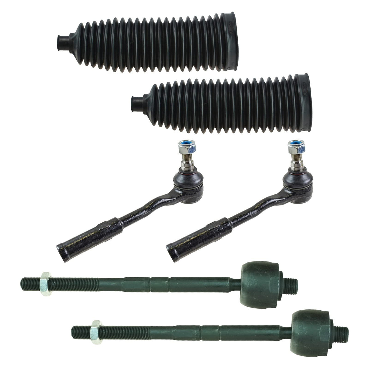 6 Piece Steering KitKit Includes(2) Front Inner Tie Rods(2) Front Outer Tie Rods(2) Front Steering Rack & Pinion BellowsFitmentCompatible with: 2003-06 Mercedes Benz SL500 FrontCompatible with: 2000-02 Mercedes Benz S430 FrontCompatible with: 2003-06 Mercedes Benz S430 Base Model FrontCompatible with: 2000-02 Mercedes Benz S500 FrontCompatible with: 2003-06 Mercedes Benz S500 Base Model FrontCompatible with: 2000-06 Mercedes Benz CL500 FrontCompatible with: 2003-06 Mercedes Benz SL55 AMG FrontCompatible with: 2001-06 Mercedes Benz S55 AMG FrontCompatible with: 2011-12 Mercedes Benz SL550 FrontCompatible with: 2001-06 Mercedes Benz CL55 AMG FrontCompatible with: 2001-06 Mercedes Benz S600 FrontCompatible with: 2004-09 Mercedes Benz SL600 FrontCompatible with: 2006 Mercedes Benz S350 FrontCompatible with: 2001-05 Mercedes Benz CL600 FrontCompatible with: 2009 Mercedes Benz SL63 AMG FrontCompatible with: 2005-09 Mercedes Benz SL65 AMG FrontCompatible with: 2011-12 Mercedes Benz SL63 AMG FrontCompatible with: 2006 Mercedes Benz CL65 AMG FrontProduct AttributesQuantity: 6 PieceProduct Features Application Specific Design: No modifications necessary Anti-Corrosion Coated: Enhanced surface life Pre-greased: No additional maintenance required Kitted for Restored Performance: Improved road-feel and handlingItem DetailsTRQ suspension kits are manufactured using premium raw materials and coatings for extended service life. Each TRQ suspension component is designed to be a direct, maintenance-free replacement to the stock unit. To extend the life of your steering and suspension components, TRQ recommends replacing components in pairs, sets, or kits. All products are fit and road-tested in our Massachusetts R&D facility to ensure we deliver on our promise of Trusted Reliable Quality.Reference NumbersACDelco: 45A10019Beck/Arnley: 101-5704, 103-3082Centric Parts: 61465000Delphi: TA2032DIY Solutions: SUS07231, SUS07439, SUS07440EMPI: 88-1633-KFord: 6L2Z3K661A, 7L1Z3332AA, BL3Z3332AMcquay-Norris: FA8111Mercedes-Benz: 2203380515, 2203380715, 2203381015, 2204601000, 2303300203, 2303300403, 2303380015, 2303380115, 2303380715Mevotech: MS10606, MS10702, MS40030MOOG Chassis Products: ES80978, EV80975, K150291NAPA Chassis Parts: 2691665Raybestos Brakes: 4301132RTS: 91-00890, 92-00868TRW Steering and Suspension Parts: JBE411