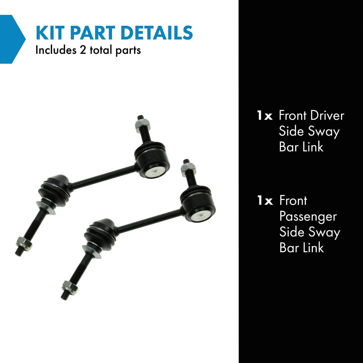 2 Piece Sway Bar Link Setkit Includes(1) Front Driver Side Sway Bar Link(1) Front Passenger Side Sway Bar Linkfitmentcompatible With: 2003-11 Mercury Grand Marquis Front Driver & Passenger Sidecompatible With: 2003-11 Lincoln Town Car Front Driver & Passenger Sidecompatible With: 2003-11 Ford Crown Victoria Front Driver & Passenger Sidecompatible With: 2003-04 Mercury Marauder Front Driver & Passenger Sideproduct Attributesquantity: 2 Piecereference Numbersdiy Solutions: Sus01574, Sus06832Ford: 3W1Z5K484Aa, 5W1Z5K484A, 6W1Z5K484Aamevotech: Mk80140Moog Chassis Products: K80140